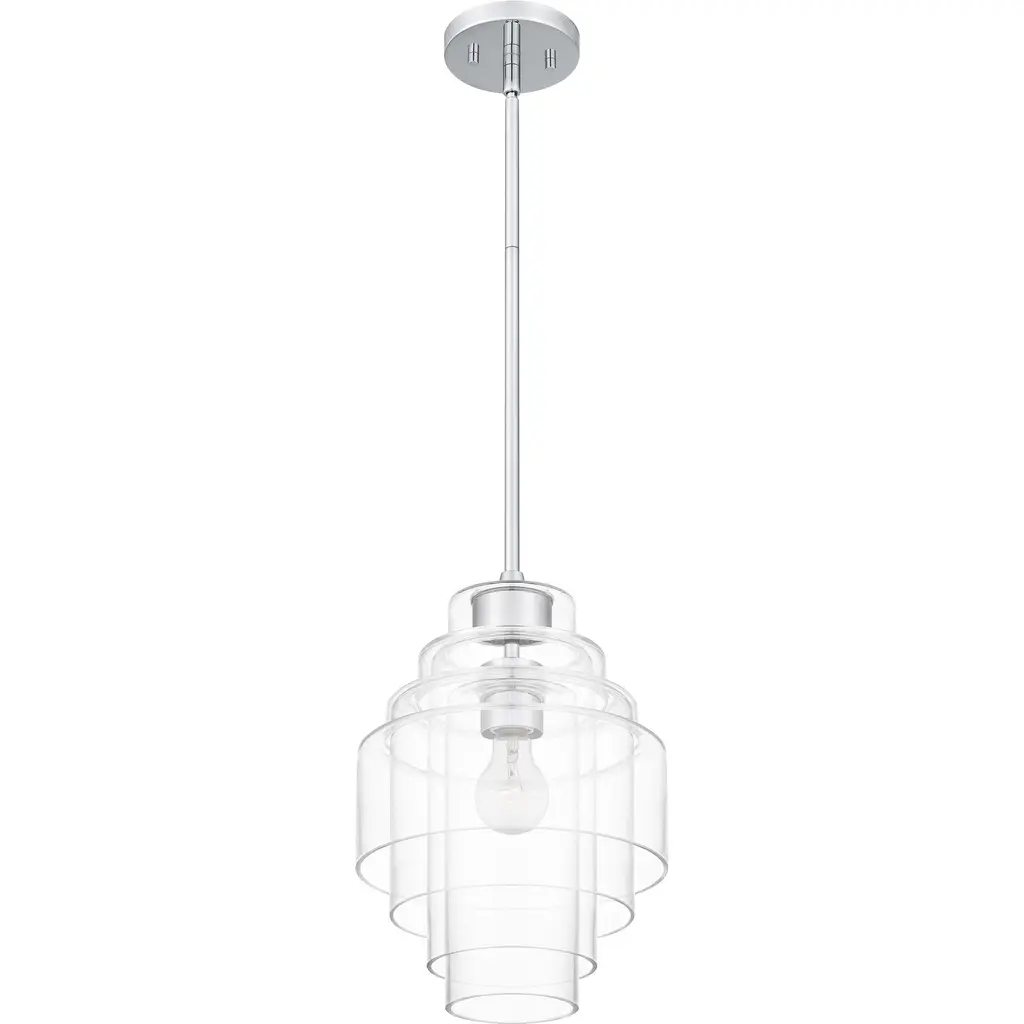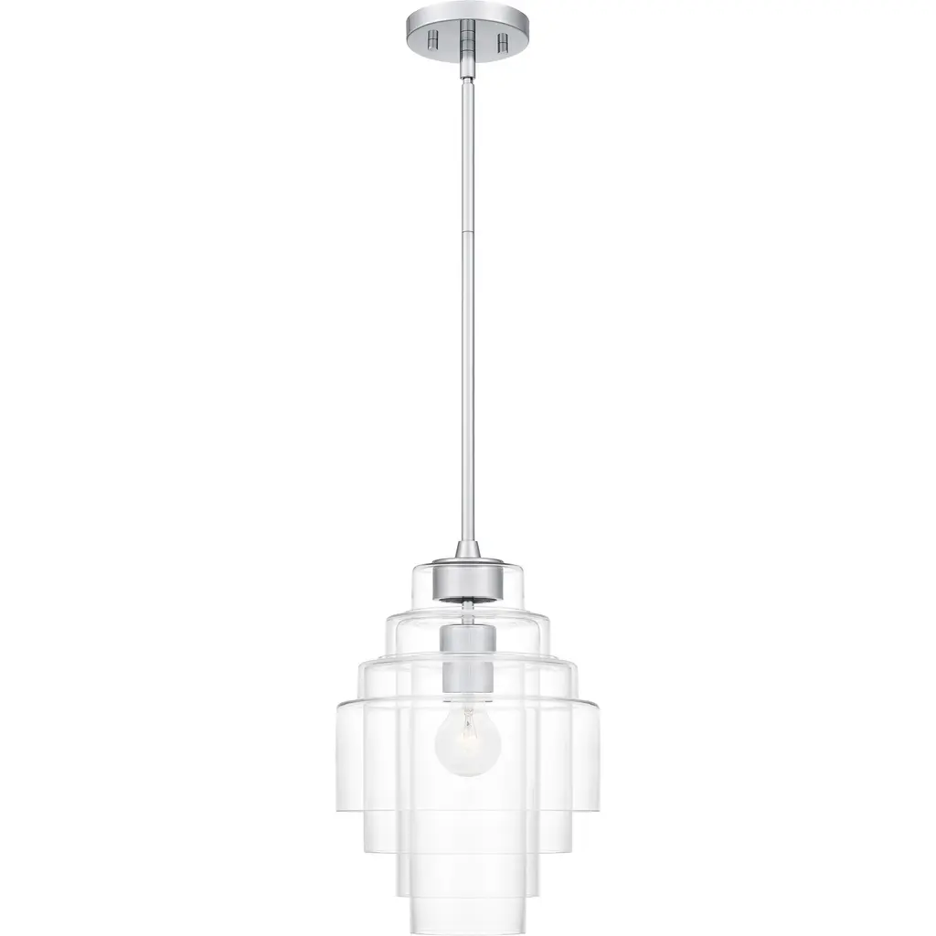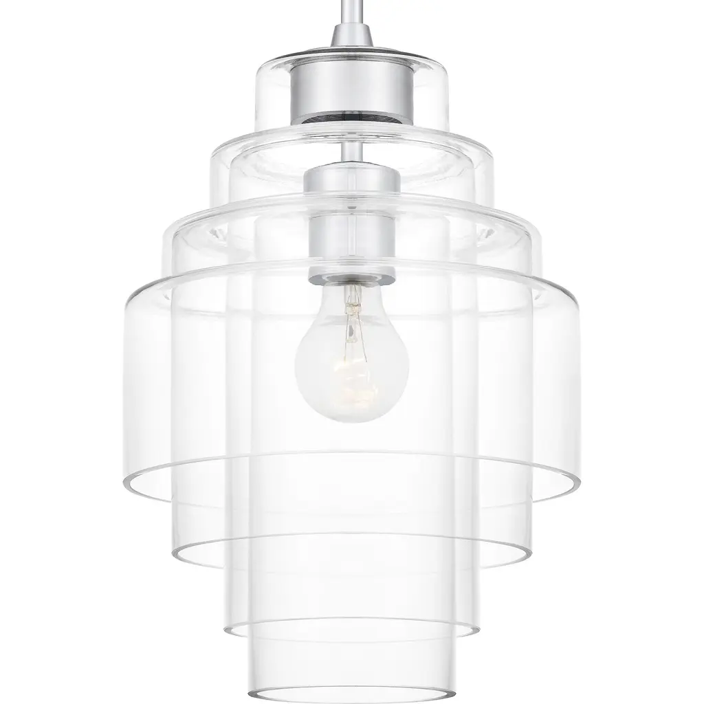 The Driscoll pendant offers eye-catching, modern styling for every room. Alternating sizes of cylindrical shades overlap for a cool, layering effect reminiscent of a waterfall. Choose from a classic polished chrome finish with clear glass shades or a bold matte black finish with clear etched glass.