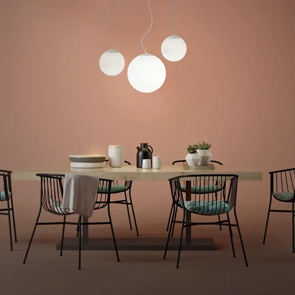 Quiet yet impactful, like a shining pearl. Add a drop of pristine light to the open or intimate setting with the Drop Pendant from Innermost. This pendant's highly refined composition underscores Innermost's goal of creating pieces that last visually and aesthetically. The use of clean shapes serves as a call back to the enduring flourishes of mid-century modern design. A neat cord suspension drops down into a low-profile steel cap with an elegant quietness. The frosted glass globe blocks all glare and gives the light a uniform softness. The downward-facing lamping translates to a comfortable pool of light over the surfaces below.