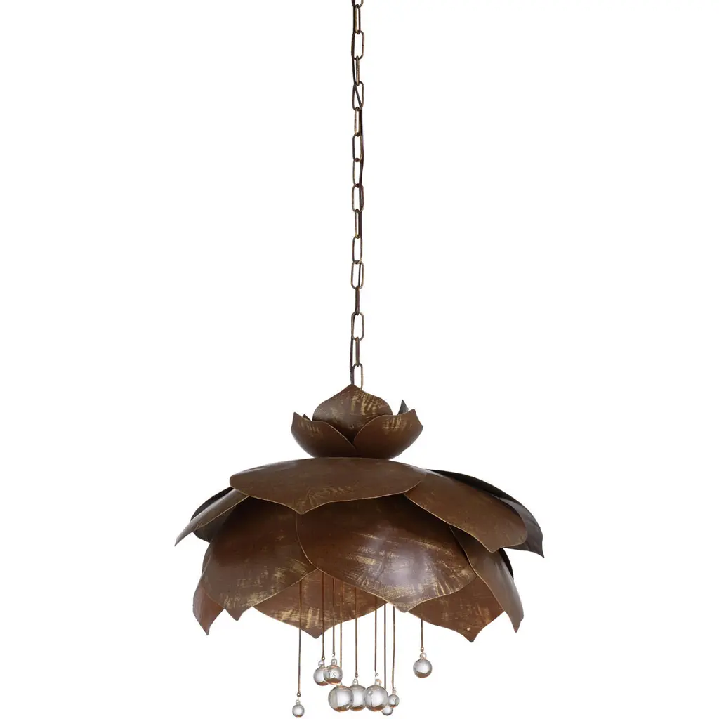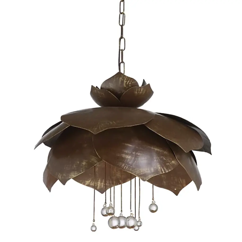 Brown Finish With Gold Highlights On Flower Petal 6 Light Pendant,clear Crystal Teardrops,comes With 6 Foot Chain