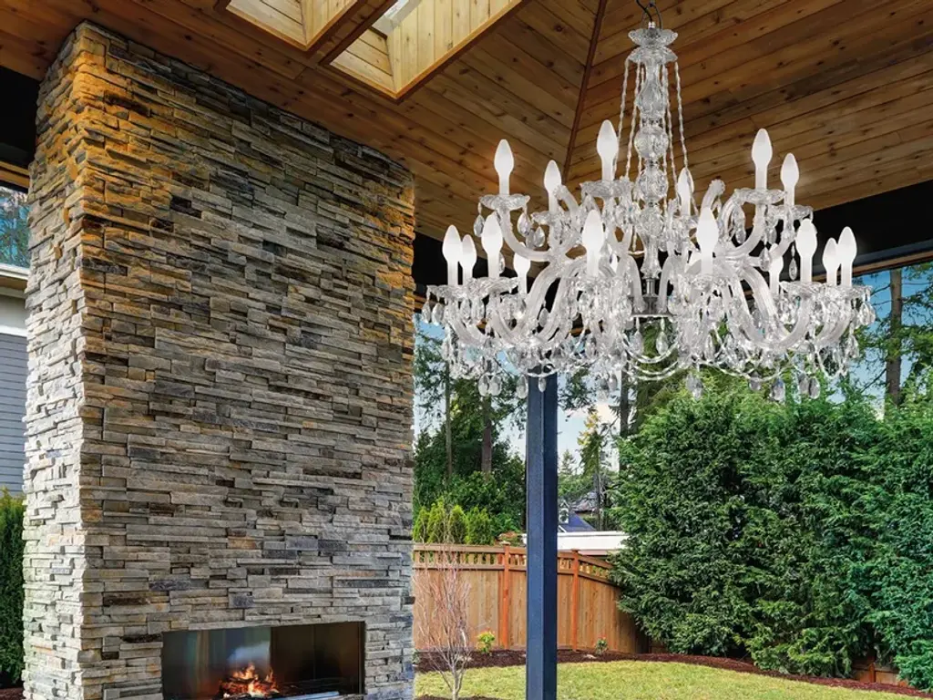 Drylight S18 is an outdoor suspension lamp. Polycarbonate structure with polycarbonate pendants or cut crystal (recommended for indoor use). LED lighting. IP66.Light source- DRYLIGHT LED W: 18xWhite LED source - 3000K 39W - 5040 LM - DIMMABLE TRIAC- DRYLIGHT LED RGBW: 18XRGB-W LED source 72W - DIMMABLEDRYLIGHT® technology with IP66 protection level: complete safety in any weather conditions. International MASIERO’s patent.