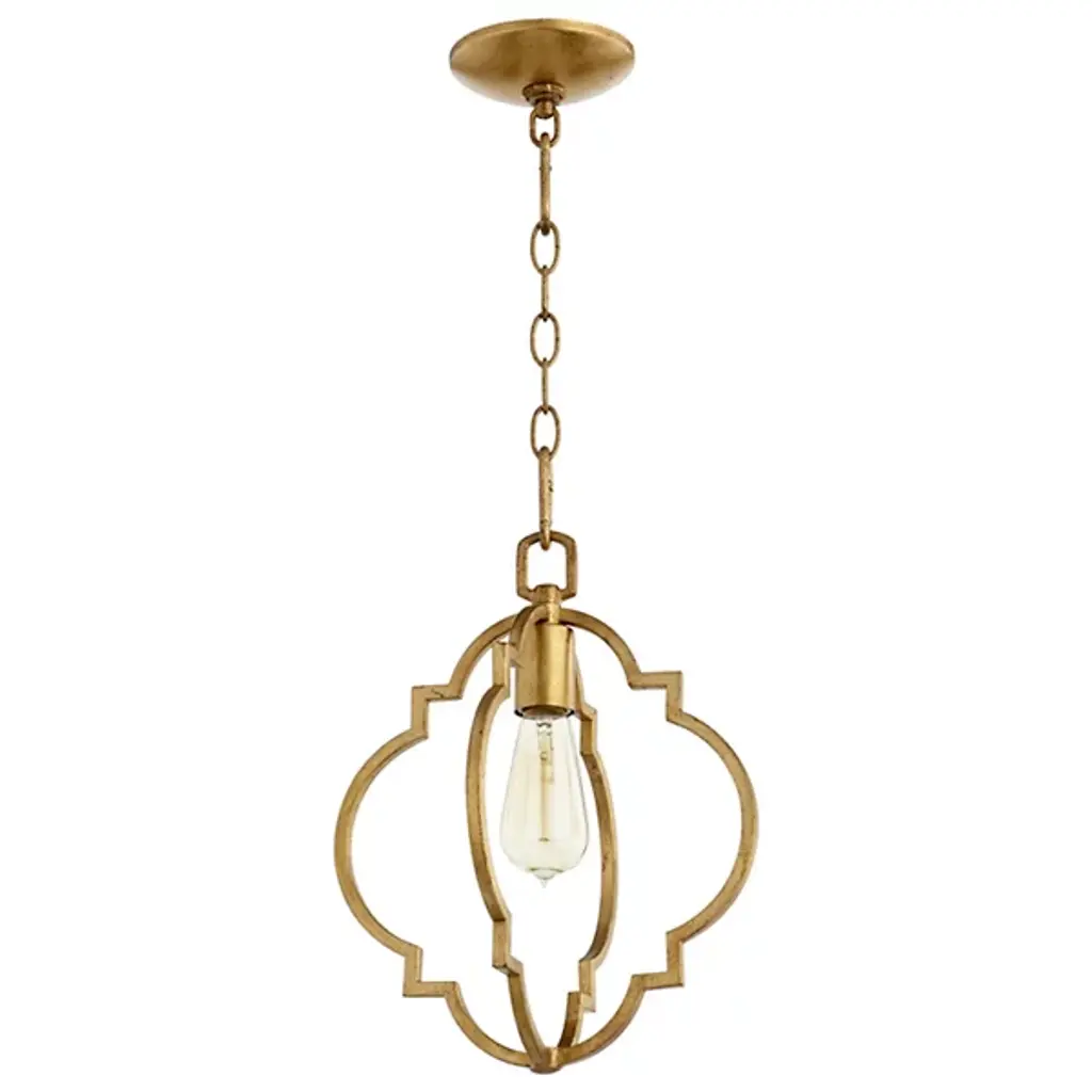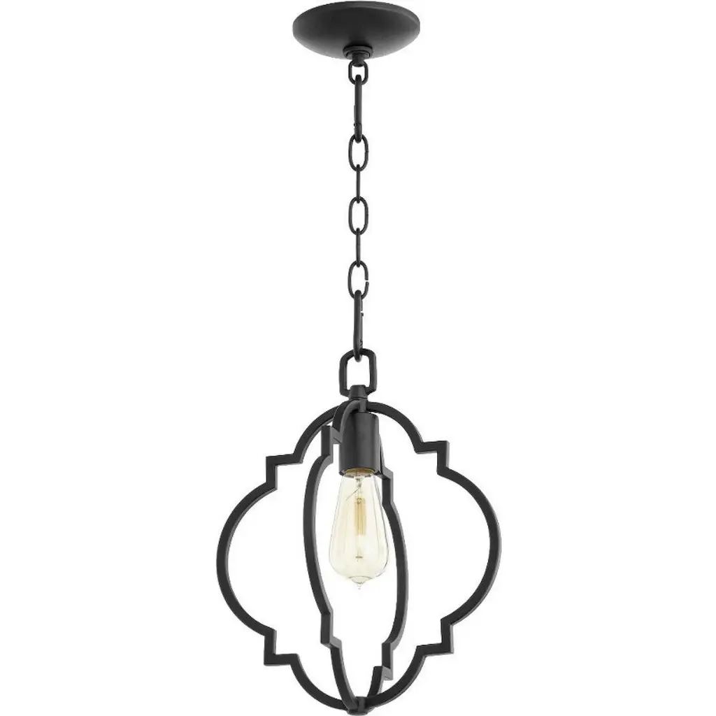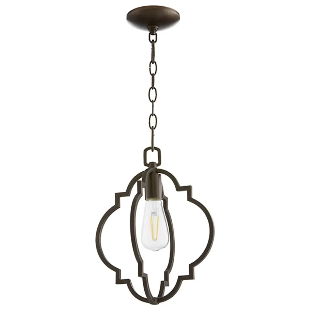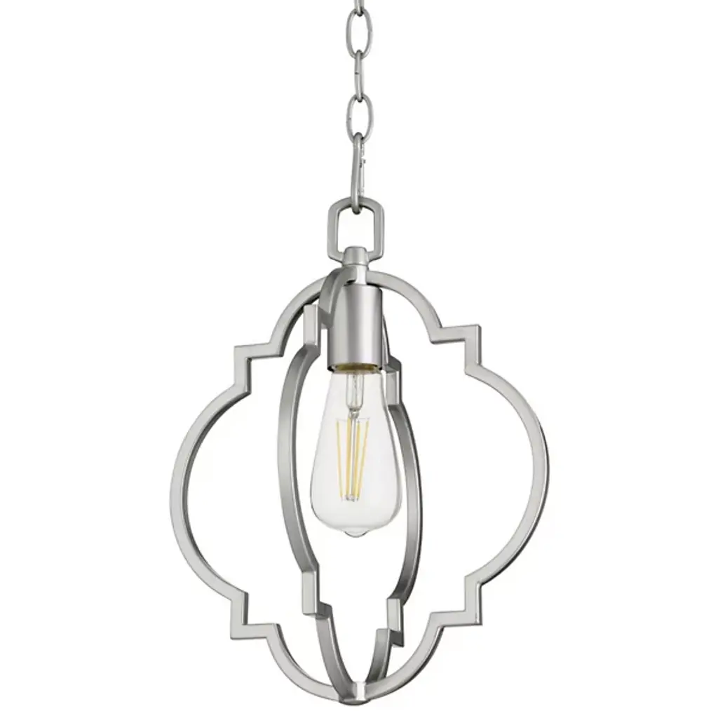 The Dublin Pendant by Quorum International adds an elegant touch to spaces throughout your home. With a contemporary design, a set of intersecting quatrefoil frames are dressed up with angled accents and set around a single, exposed bulb. Ornamental yet practical, this simple pendant is suspended by a linked chain and a clean, single loop that has a uniform, beautiful finish. It blends form and function together to dress up spaces while lending them an even layer of illumination.