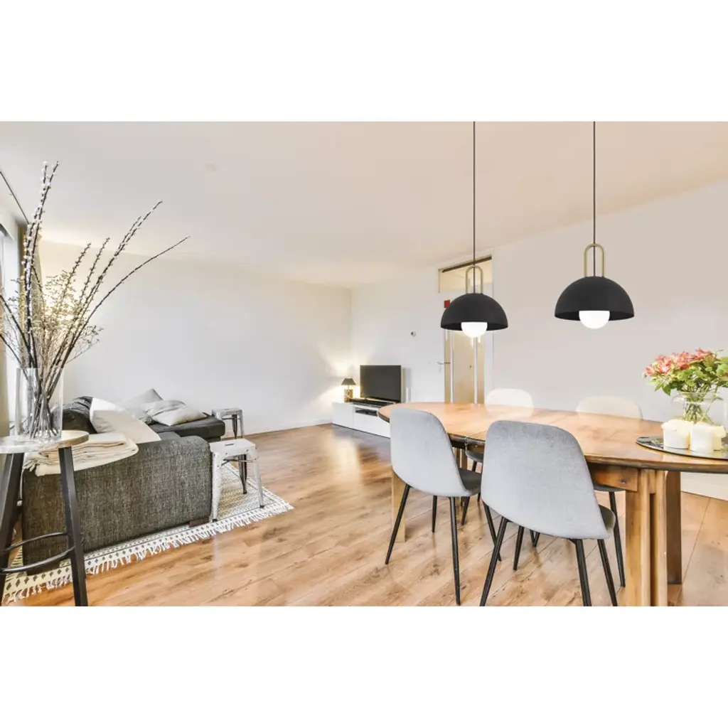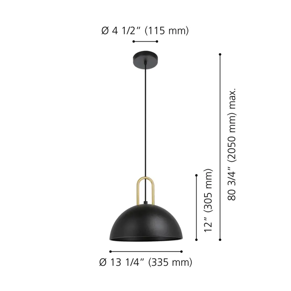 The Dugan Single Light Pendant by Eglo provides an ample amount of extra extraordinary lighting in your special space. Featuring a dome shaped structured black shade accented with Brushed Brass and an adjustable black hanging cord. This Pendant has the chic versatility to enhance the style of a variety of spaces.