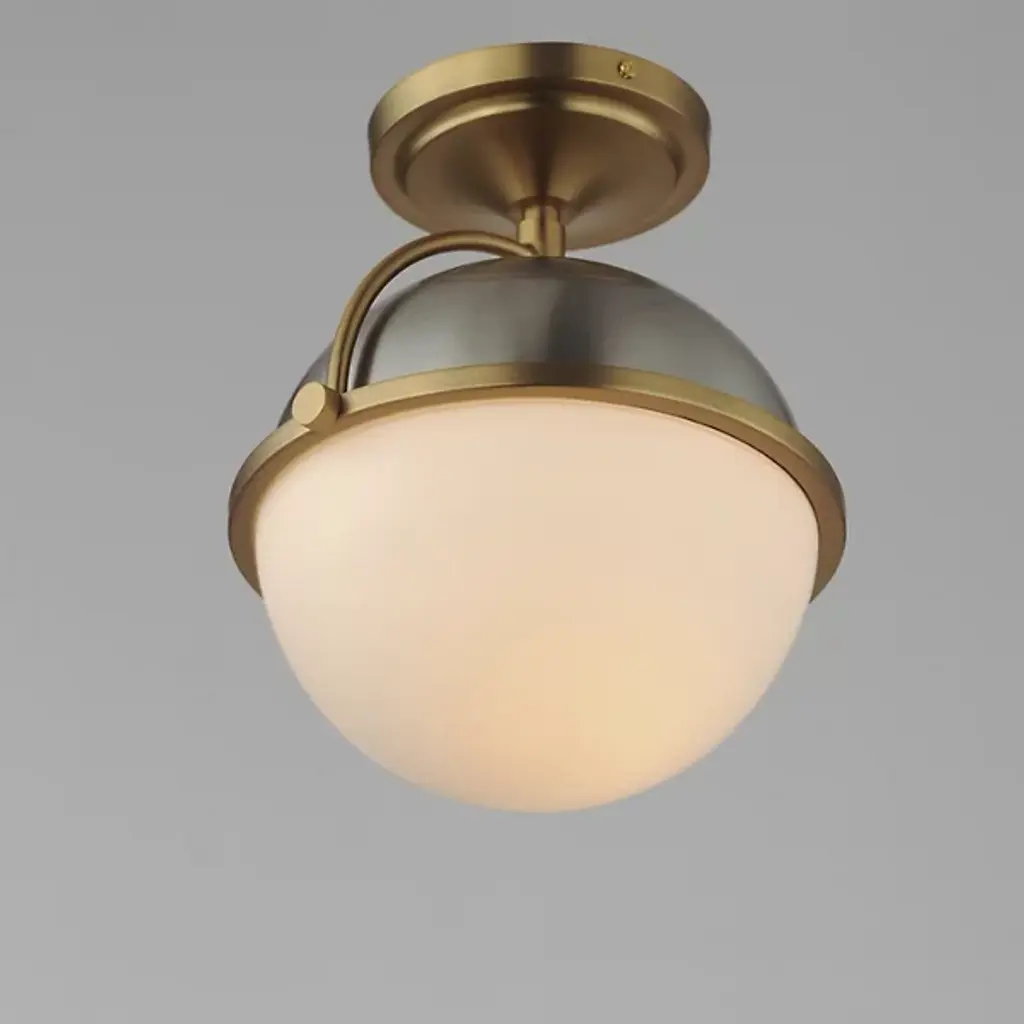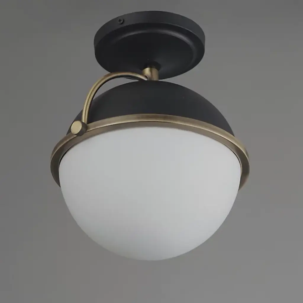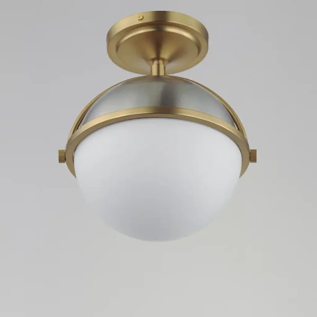 The Duke Semi-Flushmount from Maxim Lighting is an exquisite blend of sophistication and versatility for your living space. Crafted from durable steel, this semi-flushmount features a globe-shaped glass shade, creating a captivating play of light. The elegant arc-shaped yoke adds a touch of transitional style, making it a timeless addition to your décor. Its LED is dimmable when paired with a separately sold ELV dimmer. Duke is secured by a sturdy ceiling canopy.