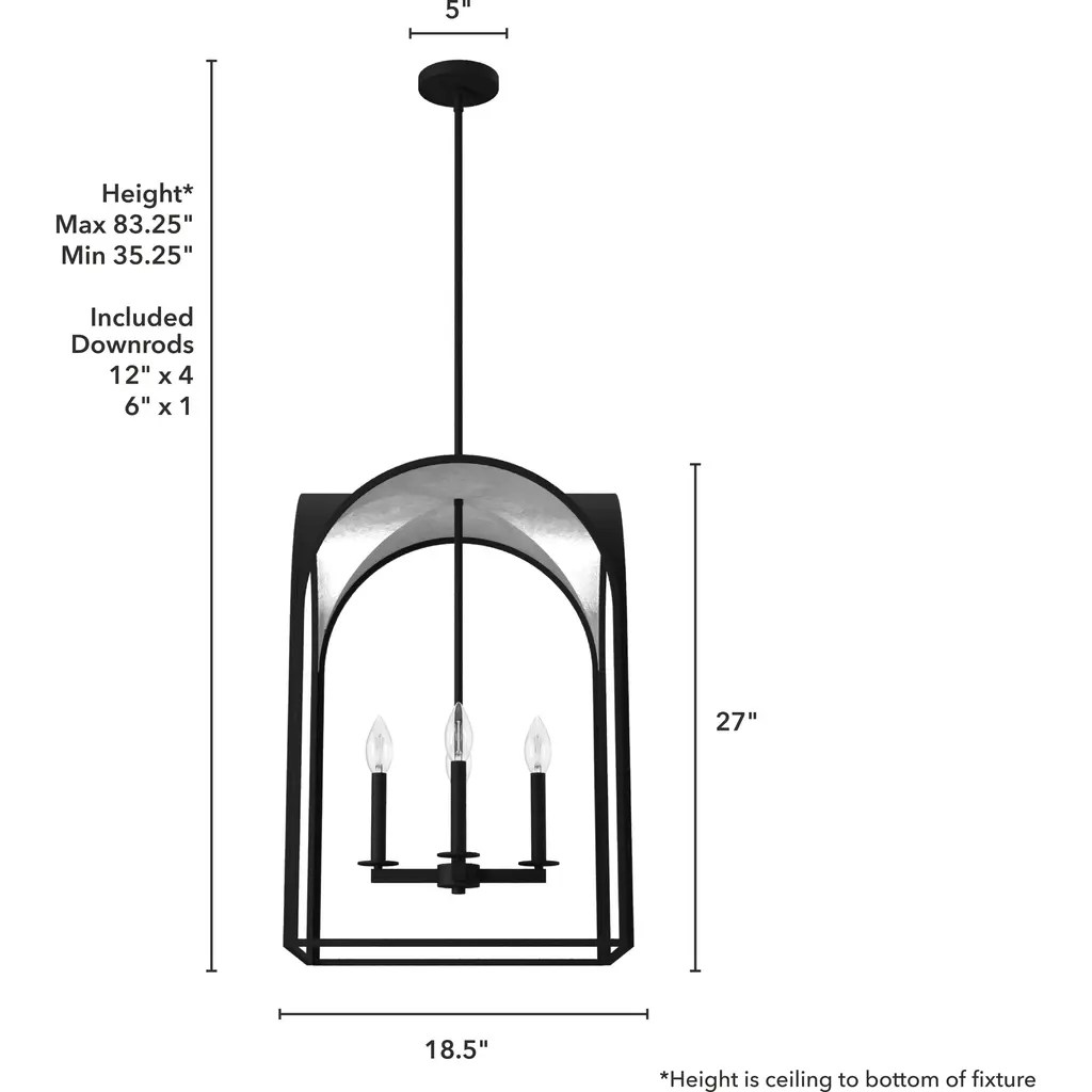 Elevate your foyer with the Dukestown pendant light. Four gently glowing lights contrast the pendant’s elegant arches against its luminous metallic interior, lending an element of warmth to your entryway. Hang a single pendant as a striking statement piece and let the Dukestown light the way.