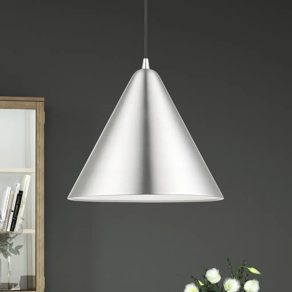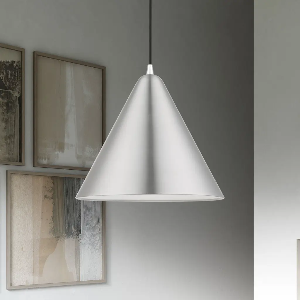 1 Light Brushed Aluminum with Polished Chrome Accents Pendant