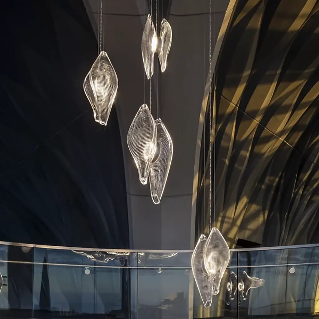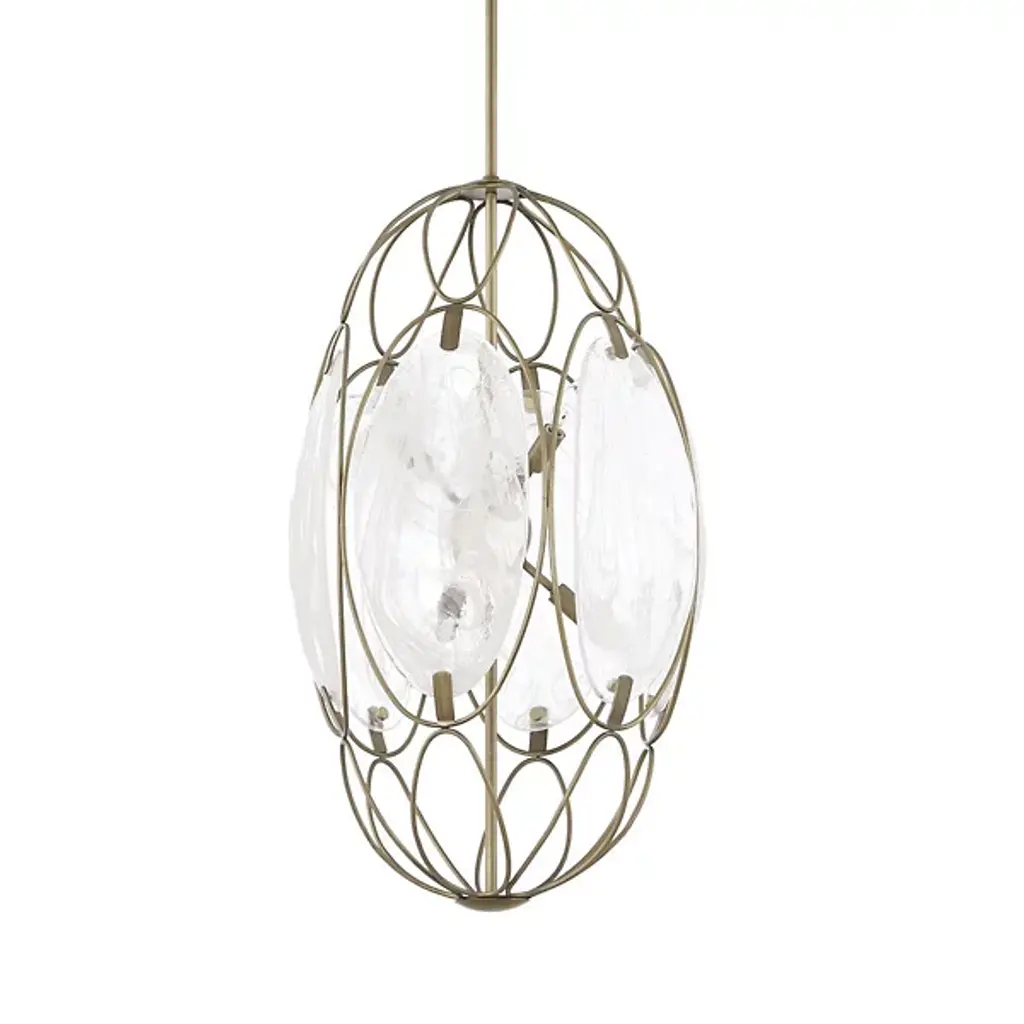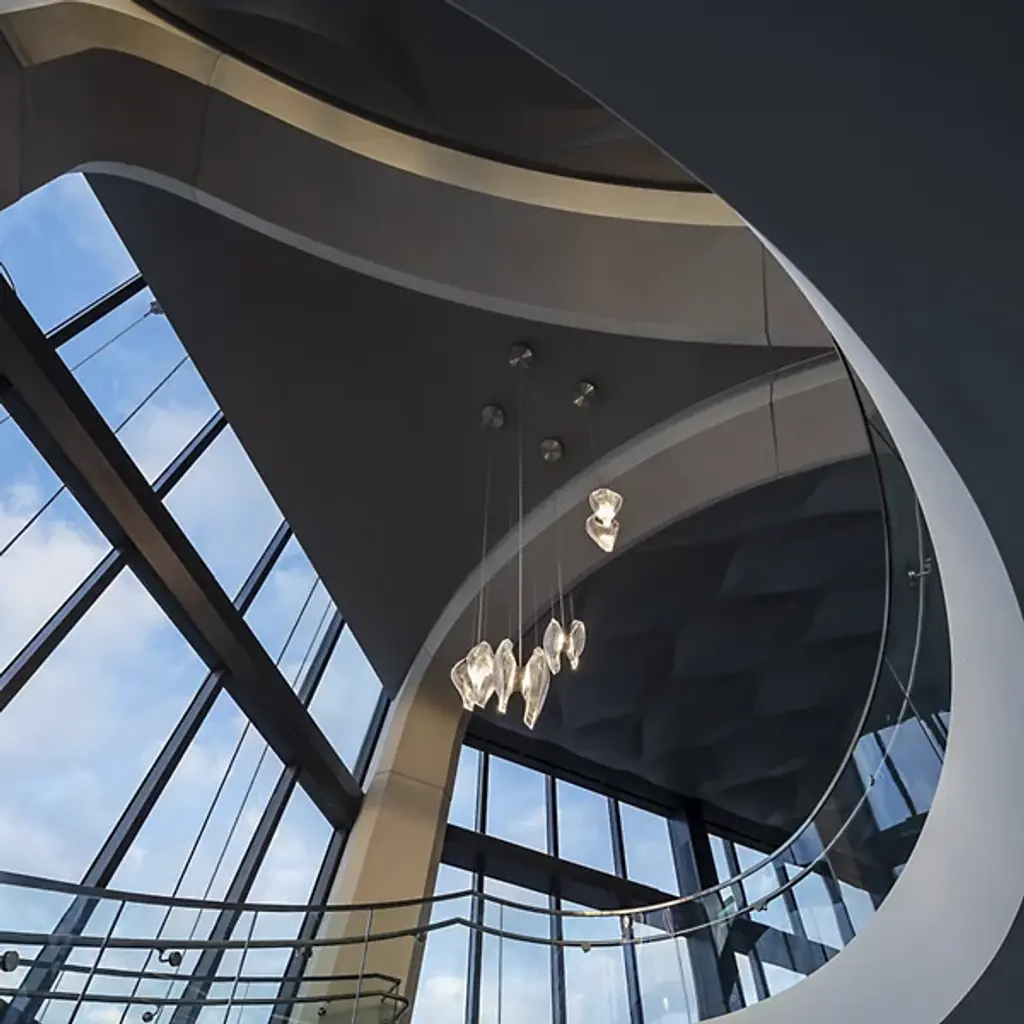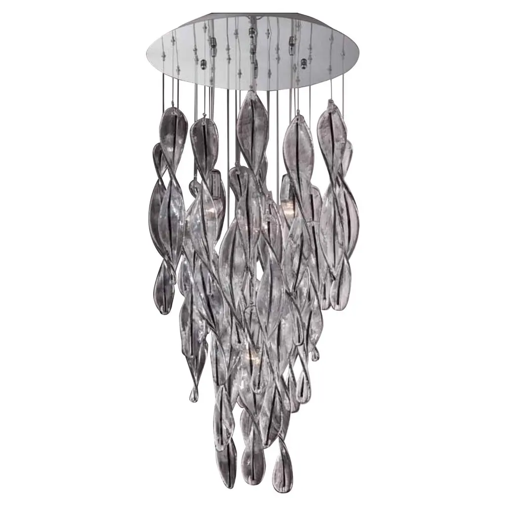 Enhance inside ceilings with the evocative desert power of the Duna LED Pendant from Lasvit. It’s a layered, creative design that brings to mind the abstract, organic lines of desert dune formations. It suspends a contoured vertical ring of anodized aluminum from a disc-shaped canopy, setting internal LED lamping inside it and supporting textured, organic forms of blown clear glass with a striated surface to either side with slim, strong cables. The powerful, energy-efficient lamping blazes out to the sides, gentled by the thick, translucent glass into a vibrant, even glow.