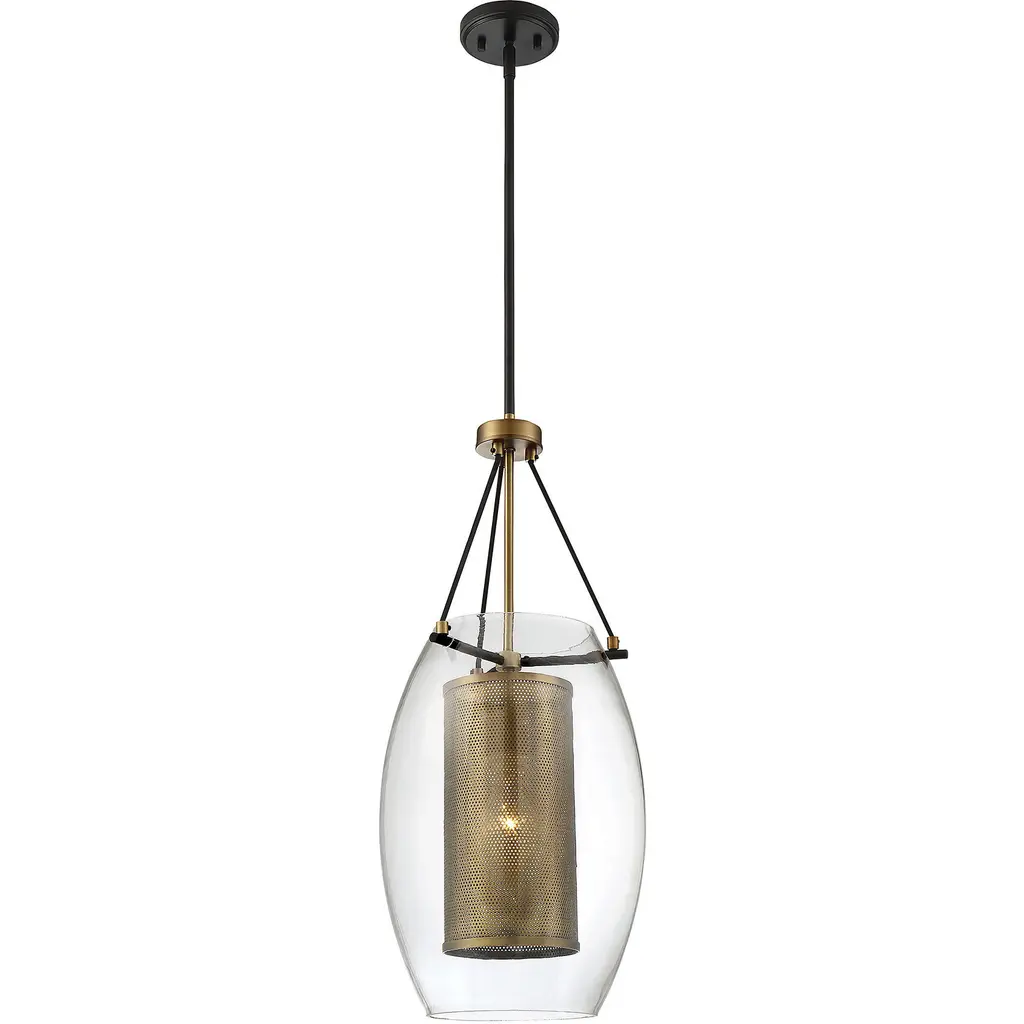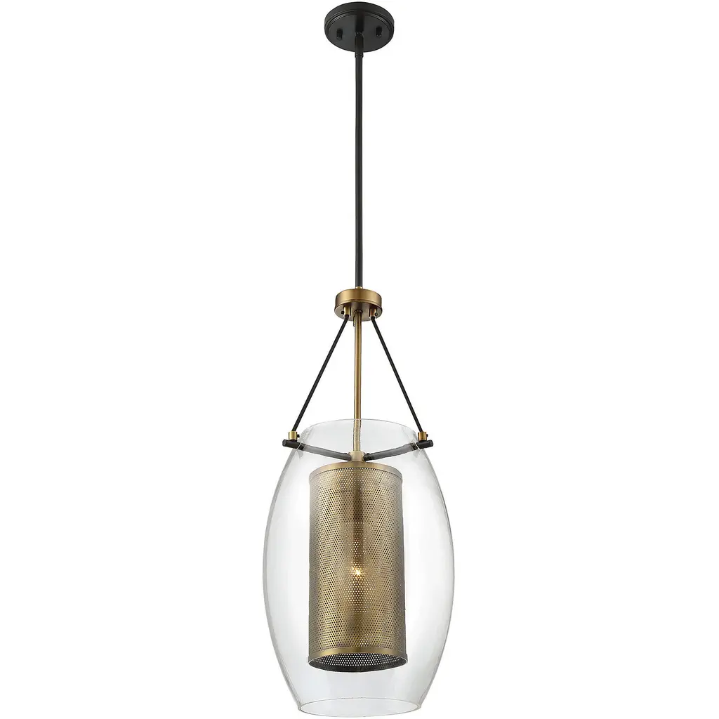 Ultra chic and current with its use of mixed metals, the fashionable Dunbar 1-light pendant was designed by Brian Thomas and manufactured with pride and precision by Savoy House. This contemporary light fixture features a warm brass mesh lantern covered by a clear glass oval and suspended by a sleek bronzed metal rod. Its an intriguing design that looks great as bath lighting, entry lighting, over a stairway or in the kitchen. Made with premium quality components, it has an adjustable rod length and canopy that adapts to sloped ceilings. Hang one or hang several at varying heights for modern style lighting that moves Its an ideal interior lighting choice for transitional, contemporary, mid-century modern and industrial decors.