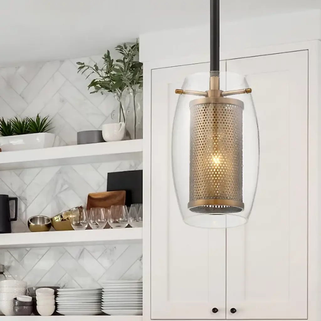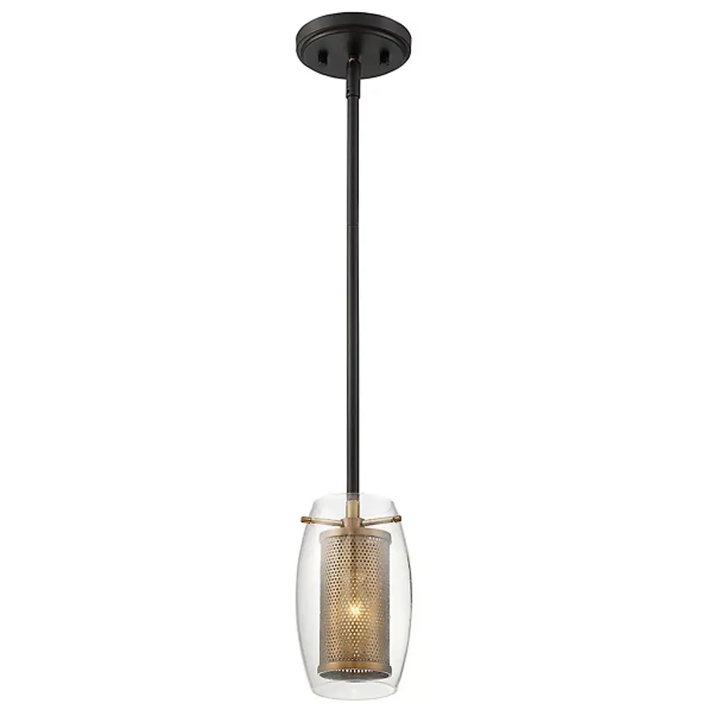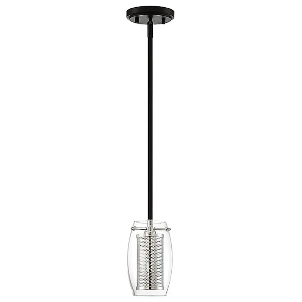 Illuminate your space with the sleek industrial style of the Dunbar Mini Pendant by Savoy House. The mesh inner shade is surrounded by a striking oval of clear glass, while the two-tone metallic finish with matte accents provides depth and an added luxurious vibe. Install this pendant in a dining area or living room and instantly boost the clarity and beauty in your home.