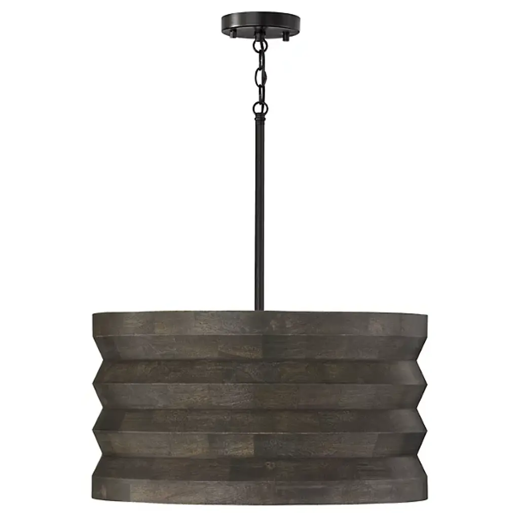The Dunn Drum Pendant from Capital Lighting demonstrates the natural beauty of mango wood through its sculptural, accordion-like form. Horizontal socket placement ensures even illumination throughout the textured wooden surface. Each hand-shaped wooden segment creates dramatic shadow lines that emphasize the dimensional quality of the pendant. The joinery between wood sections reveals masterful craftsmanship that machine manufacturing cannot replicate. This modern piece’s wooden drum shape provides a substantial presence, balancing boldness with restraint.