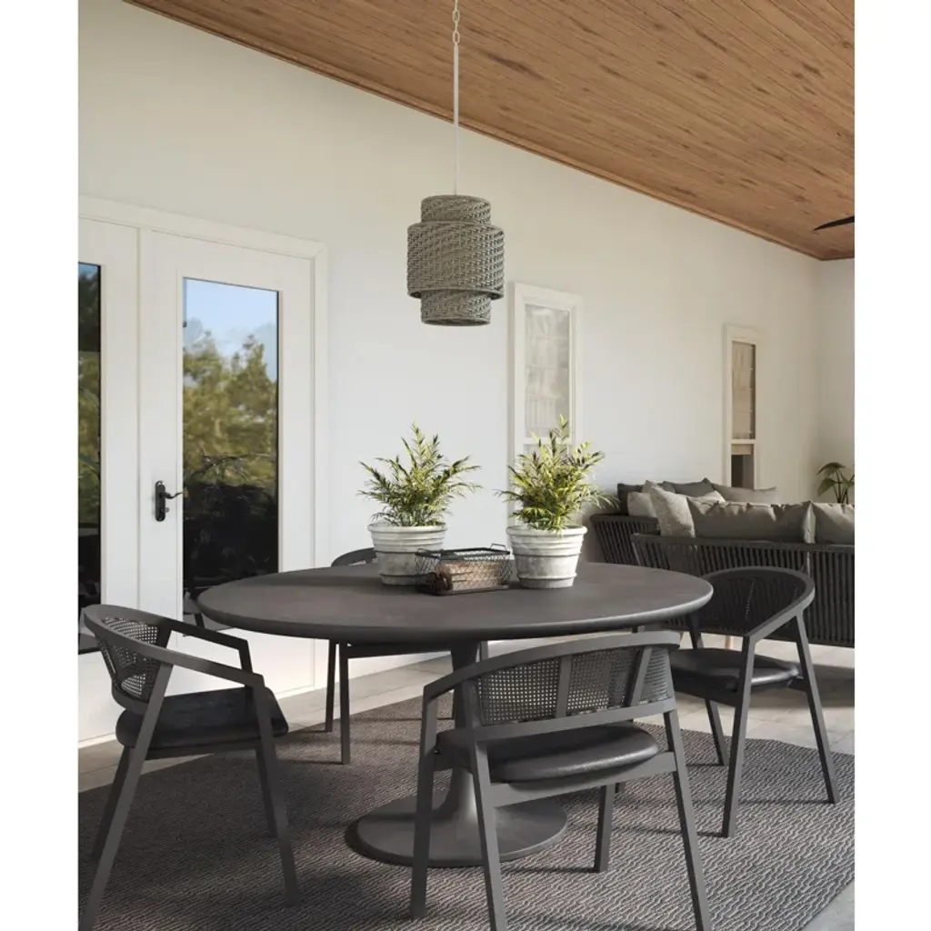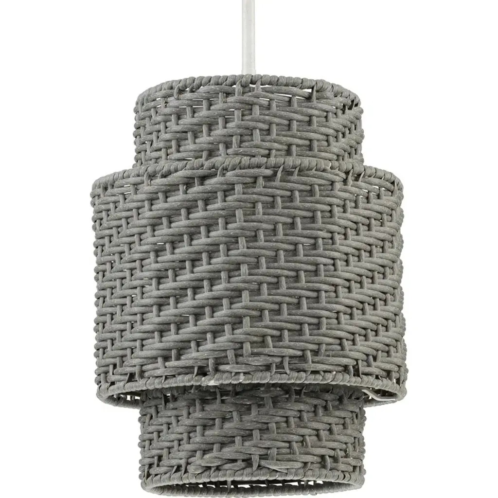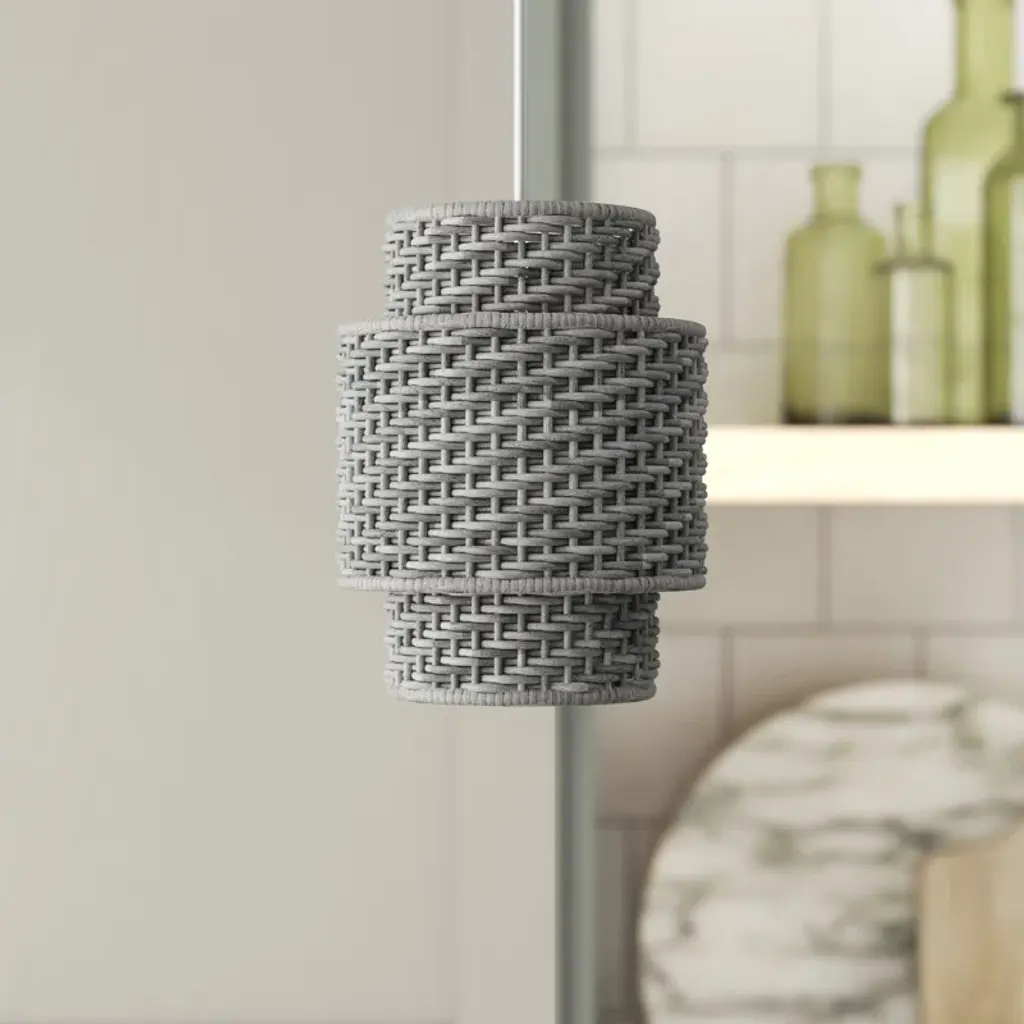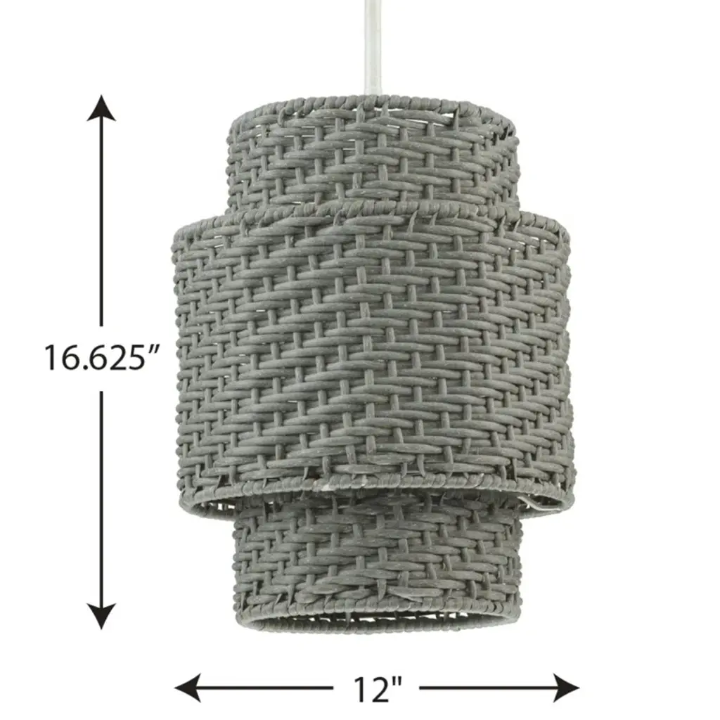 With this outdoor pendant light, your covered porch or patio sectional can be just as stylish as your indoor ensemble. It's made from a synthetic rattan shade with a neutral gray finish that's warm and versatile. Warm, subtle light filters through the double-shade design to create a glowing ambiance from a single bulb of up to 100W (sold separately). This hardwired pendant light hangs from a circular canopy and a length of adjustable height downrod. Plus, it's rated for use in covered outdoor areas, so you don't have to worry about weather-related wear and tear.