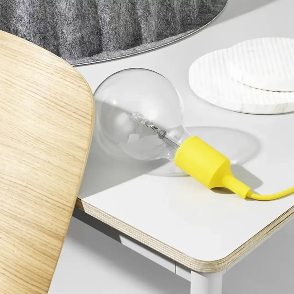 The E27 Mini Pendant from Muuto is a versatile piece that can be used as a single light source, in pairs, rows, or even clusters to create a modern Scandinavian chandelier tinged with industrial design. The E27 Pendant features a pressed silicone rubber socket cup, and both the cord and socket are assembled by hand. Taking on the look of an exposed lamp, this product revels in the beauty of simplicity.