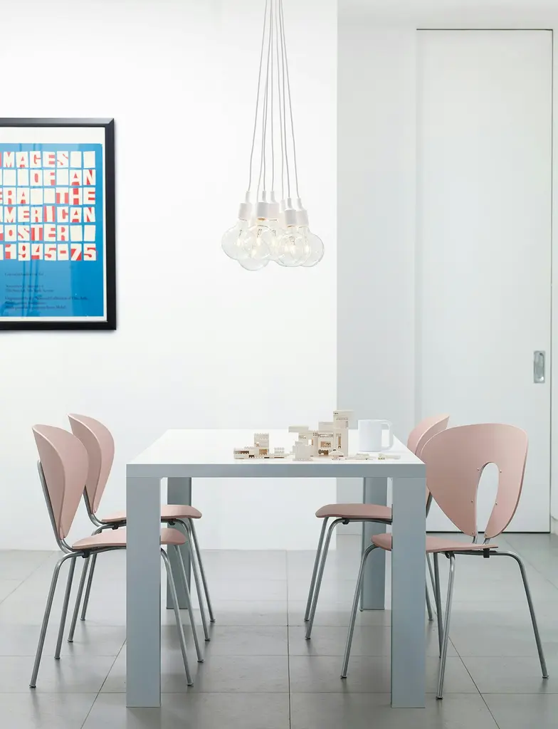 “The simplicity of the naked bulb is hard to compete with," says Swedish designer Mattias Ståhlbom of his E27 Pendant (2008). Ståhlbom has distilled the idea of a pendant to its essence: just a socket, bulb, and cord. The name of this pendant comes from the 27mm Edison screw base (or E27) developed by Thomas Edison for the incandescent light bulb. Made of indelible silicone, the socket won't retain heat and resists fading over time. This modern pendant light can be hung singly, in pairs, in a row, or in a cluster. Requires hardwired installation. Bulb (included): incandescent G40/40W. UL Listed. Made in China.