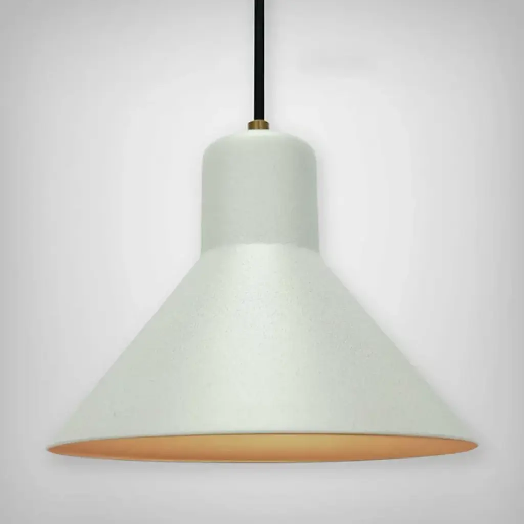 The Earth Tone HV108 Pendant from Baselite showcases a cylindrical top section that flares dramatically into a wide conical bottom. This funnel-like design maximizes light distribution while creating an architectural statement in any room. The aluminum material provides strength, making it suitable for both indoor and covered outdoor applications. Its wide opening directs light downward and outward, eliminating harsh shadows and providing even illumination across surfaces below. The pendant's form works particularly well in modern kitchens, workshops, or any space where broad task lighting is needed for productive work.