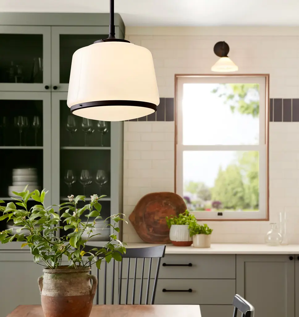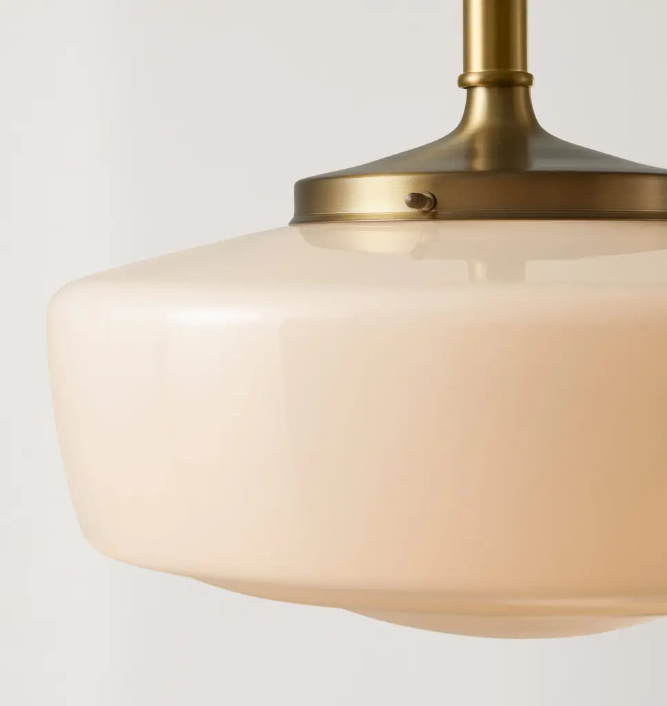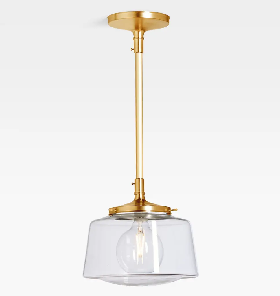 Our Eastmoreland Pendant is the result of compressing the curves and tightening the corners on our best-selling schoolhouse lights - but without sacrificing the elegant shape that gives these classics enduring appeal. Available in several finishes and with a wide range of shades, the Eastmoreland works great in any space. Details You'll Appreciate Schoolhouse-inspired design made with durable brass Compatible with 6" fitter shades Assembled to order at our Portland, Oregon factory Product Specifications Solid brass components Suitable for indoor and covered outdoor use (UL Rated Damp) Hardwired; professional installation recommended Assembled in the USA of domestic and imported parts