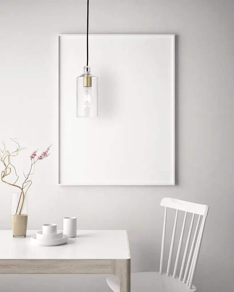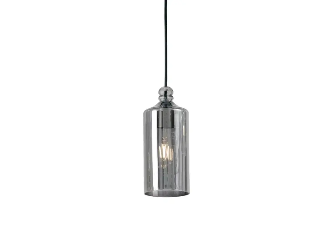 Ebe is a suspension lamp with transparent glass diffuser, electric cable covered with black fabric sheath and black painted ceiling rose diameter 8 cm. Also available with gray smoked glass diffuser.Technical information:- Source: E27 light- Power: 1 x max 40w