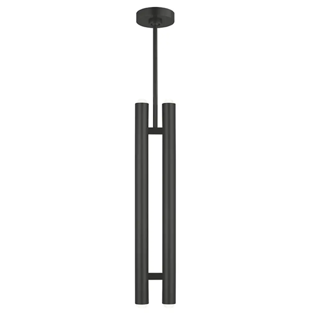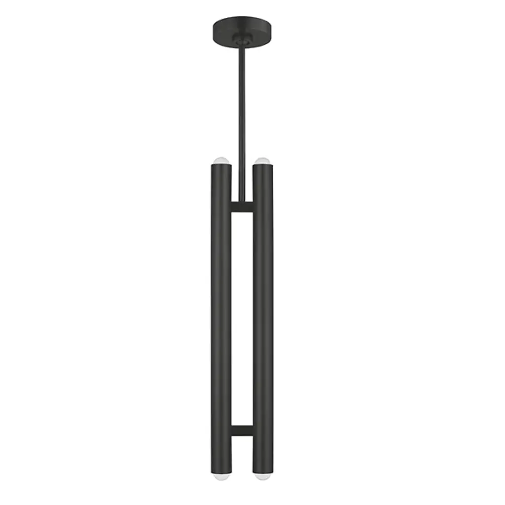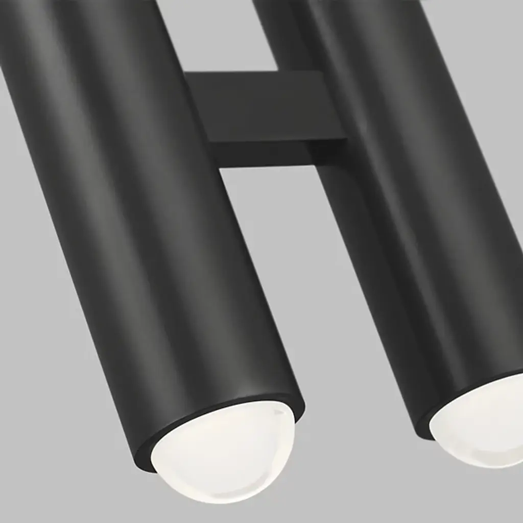 Bring even illumination to high-ceilinged interiors with the refined, dual-lighting design of the Ebell LED Pendant from Kelly Wearstler for Visual Comfort Modern, formerly known as Tech Lighting, It uses natural brass to create a sculptural and expressive silhouette that calls back to mid-century modern design. The piece dispatches a slim down rod from a low-profile ceiling canopy. The down rod stretches down to a short crossbar that secures a vertical cylinder housing at each end. These cylinders contain dimmable LED lamping that translates to up and downlight. An inset dome of laser-etched glass caps off each open end of the housing, mellowing bright glare above and below into a warm, even glow.