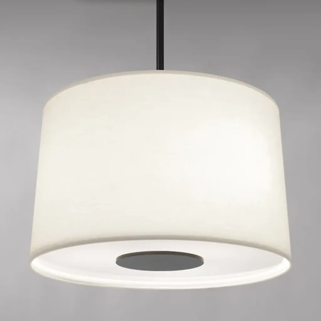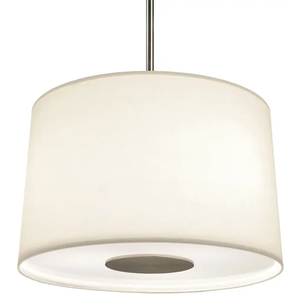 All-over light with all-over transitional style. The Robert Abbey Echo Drum Pendant diffuses a bright wash of light in all directions through its Fondine fabric shade and acrylic bottom diffuser. The flared drum shape of the shade and the complementary finish's flattering tones will accommodate any transitional space.