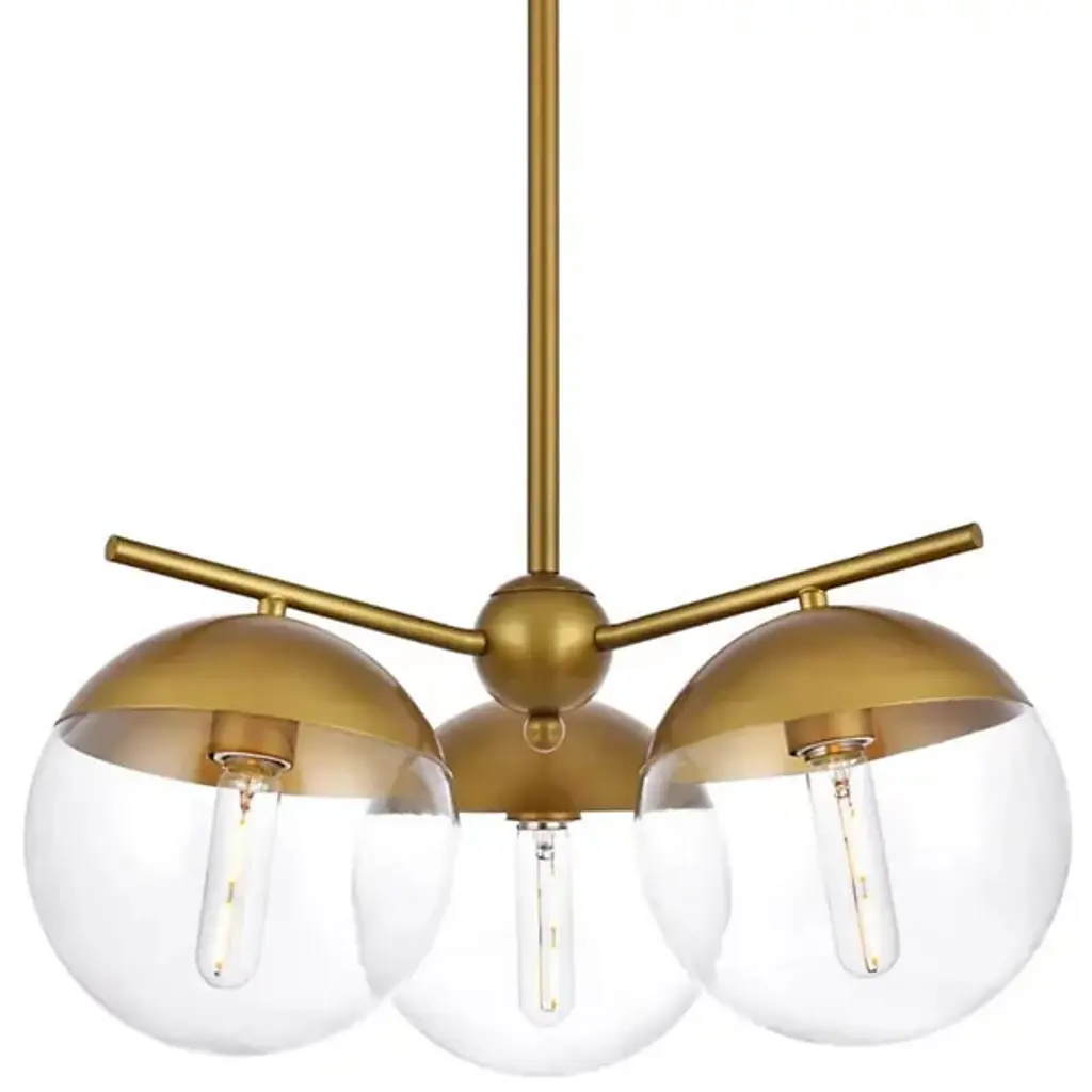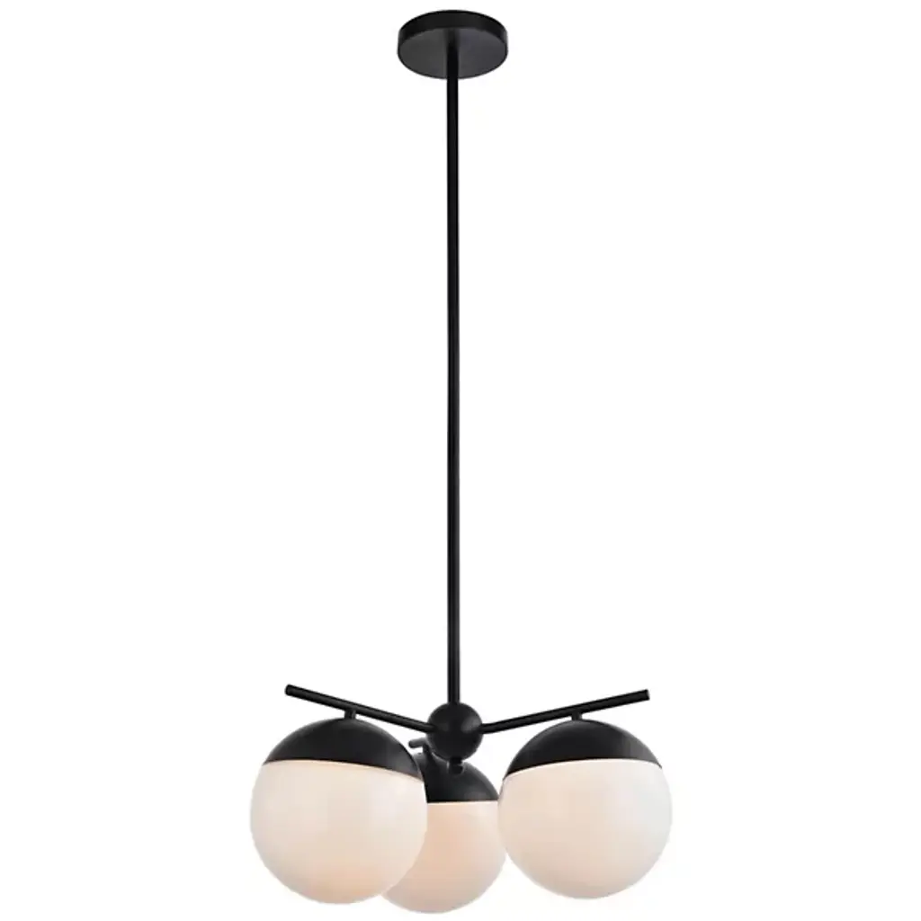 The Eclipse Cluster Pendant from Elegant Lighting is born from simplicity and balance. Three globes, each a harmonious marriage of glass and metal, are arranged in a triangular formation. Suspended from a central rod, the orbs appear to float, creating an illusion of weightlessness that contradicts the fixture's sturdy construction. The metal caps crowning each sphere act as both design element and light director, focusing illumination downward while allowing a soft glow to emanate from the glass portions.