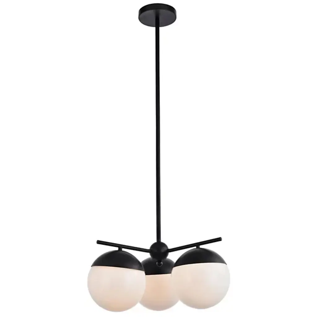 The Eclipse Cluster Pendant from Elegant Lighting is born from simplicity and balance. Three globes, each a harmonious marriage of glass and metal, are arranged in a triangular formation. Suspended from a central rod, the orbs appear to float, creating an illusion of weightlessness that contradicts the fixture's sturdy construction. The metal caps crowning each sphere act as both design element and light director, focusing illumination downward while allowing a soft glow to emanate from the glass portions.