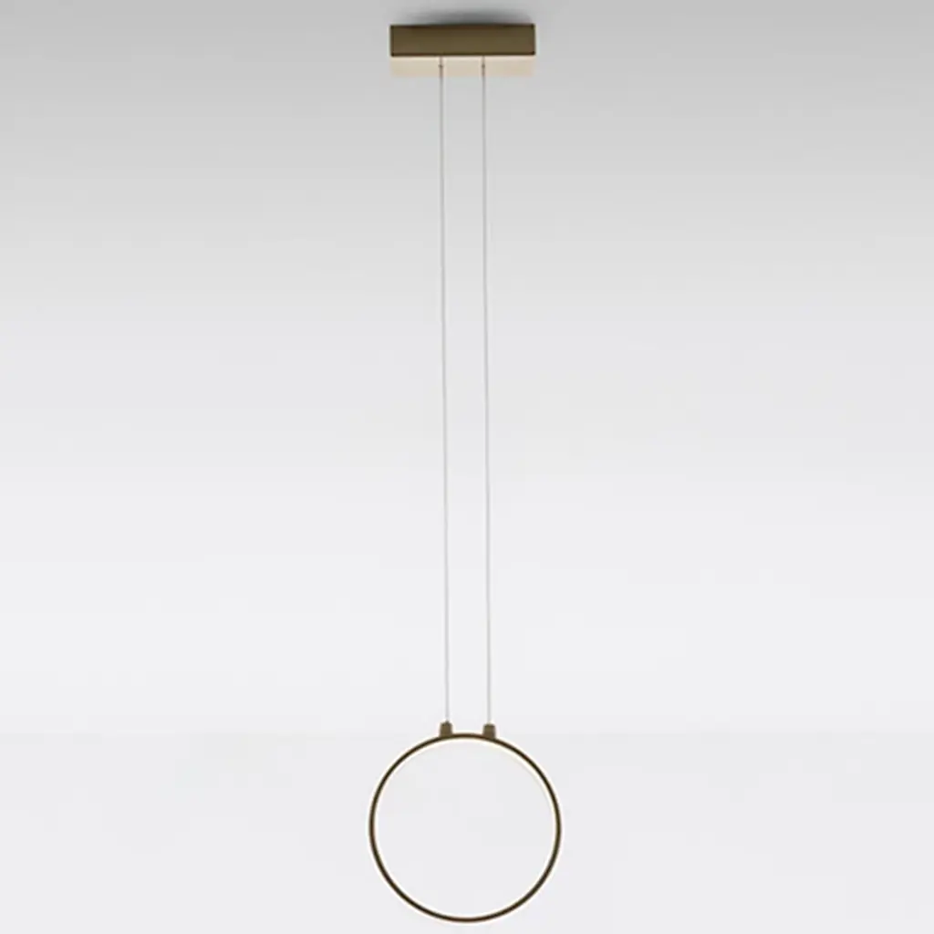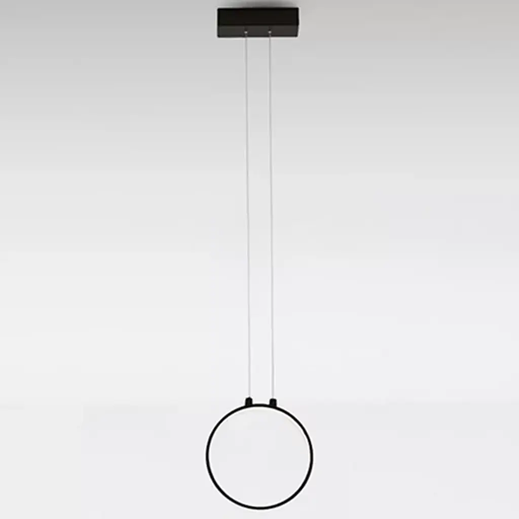 The Artemide Eclittica LED Pendant presents a balancing act of direct, energy-efficient lighting with minimal materials. A simple hoop gracefully suspends from two suspension cables, using negative space as the premier design element while still providing sufficient downlight. The LED light source sits at the base of the empty circle, inversely keeping the solid finish on the inside while the LED module is left in full view below.
