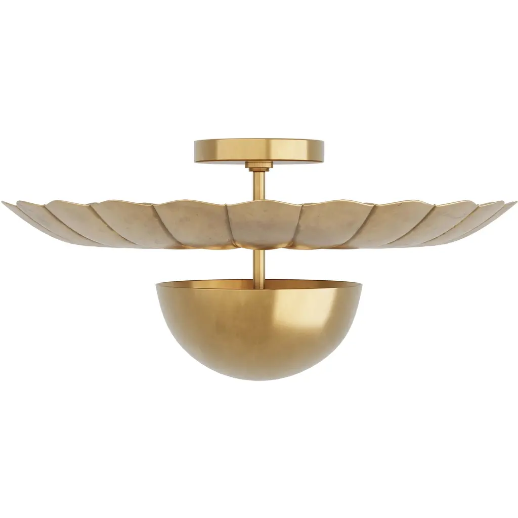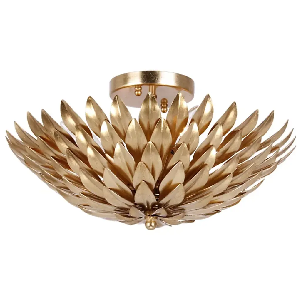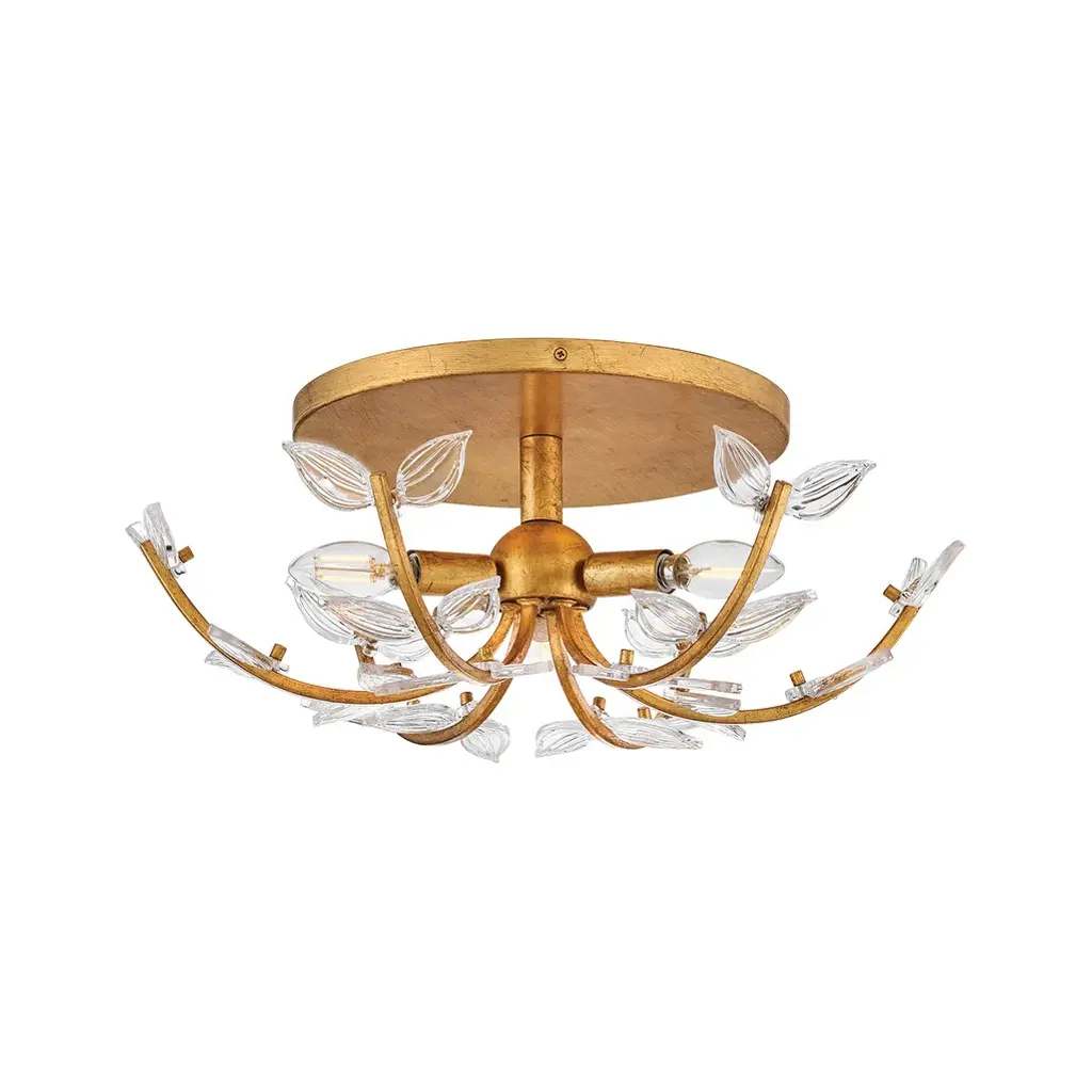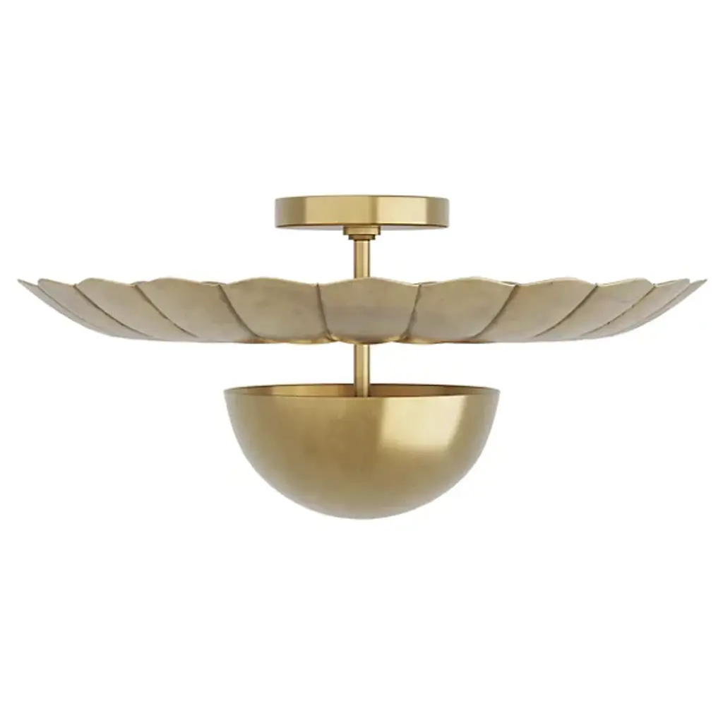 The Eden Semi-Flushmount from Capital Lighting transforms botanical inspiration into sculptural lighting through curved metal leaves that radiate outward like an opening flower. Each leaf-shaped element curves gracefully from the central mounting point, creating organic movement that softens the ceiling line. The design captures that moment when a bloom reaches full extension, with the metal framework forming delicate petals that house integrated LED lighting. This approach brings natural forms indoors while the upward-facing configuration provides ambient illumination that washes across ceilings.