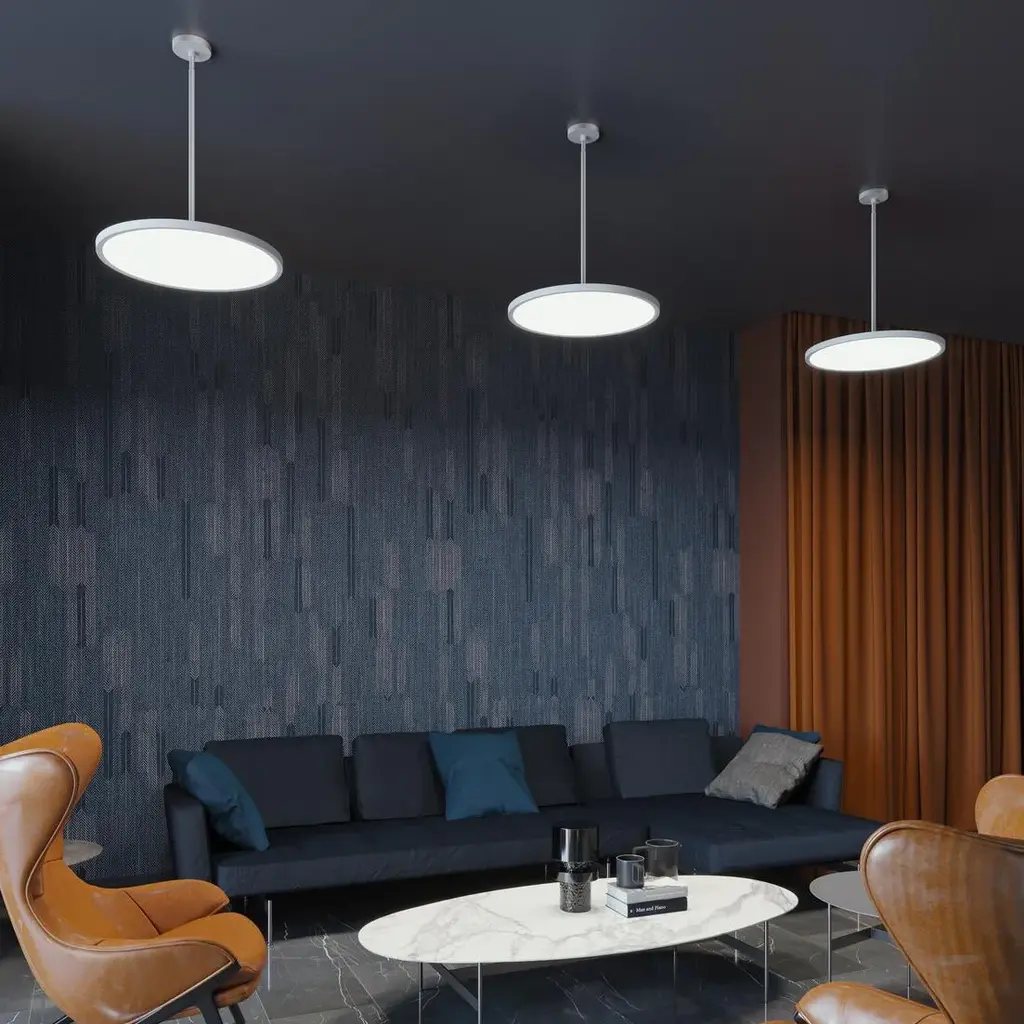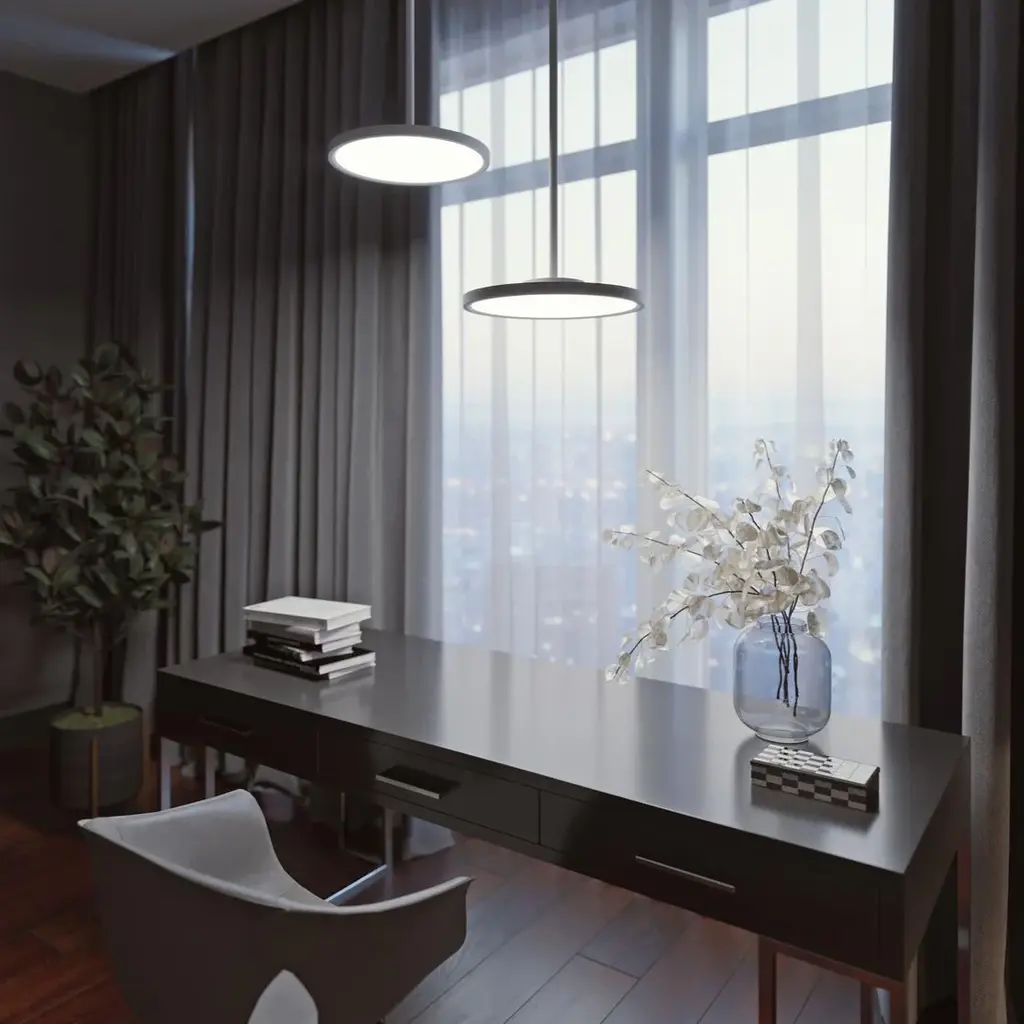 The Edge Round LED Pendant Light from AFX showcases a refined minimalist design with its monochrome aluminum frame and wide white acrylic diffuser. Equipped with a 3-in-1 color temperature system, it allows you to customize the ambiance effortlessly. Perfect for living rooms, kitchens, and other spaces, this contemporary pendant adds a sophisticated touch while providing versatile, elegant illumination. Highlights
