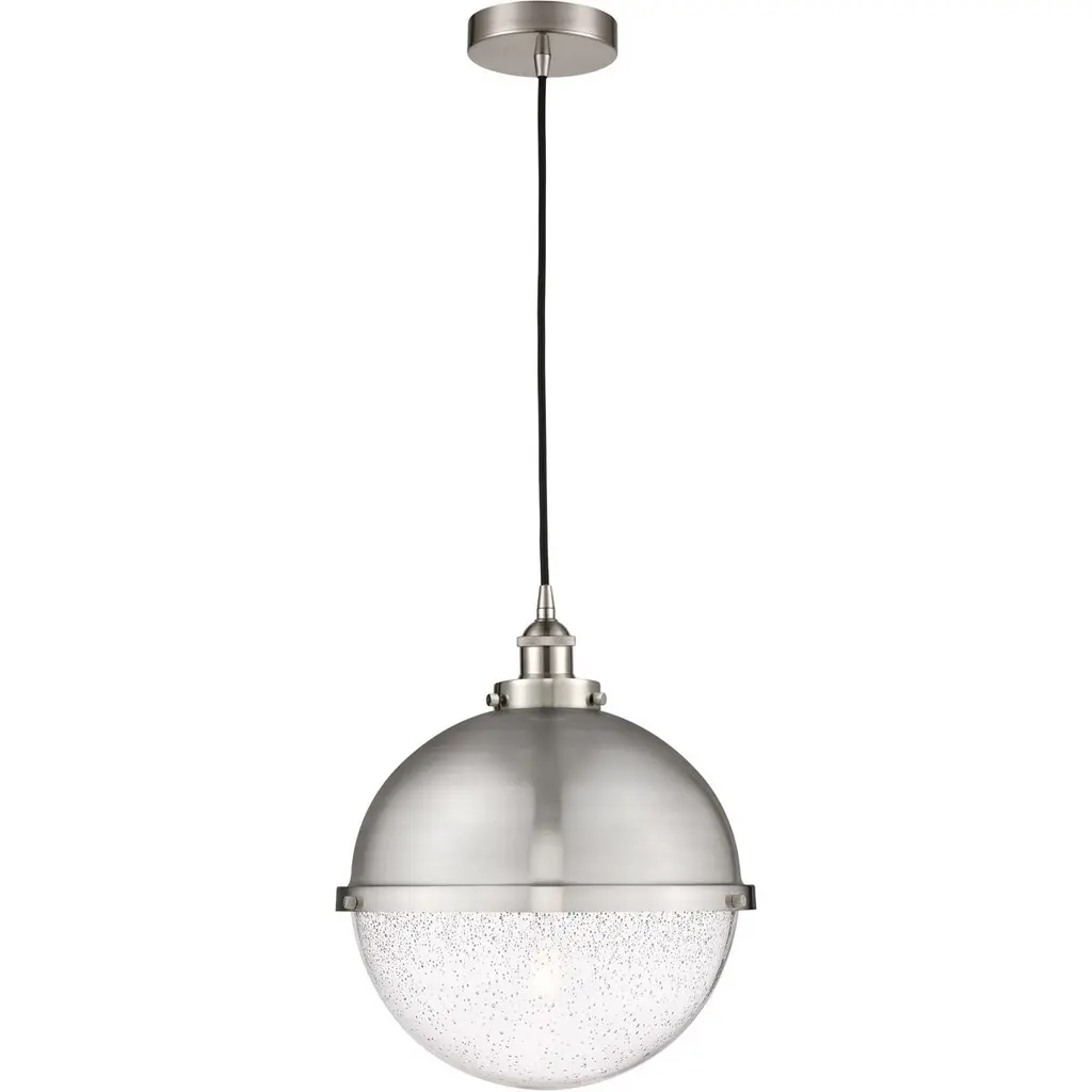 Edison Bell Led 12 Inch Brushed Satin Nickel Mini Pendant Ceiling Light In Seedy Glass