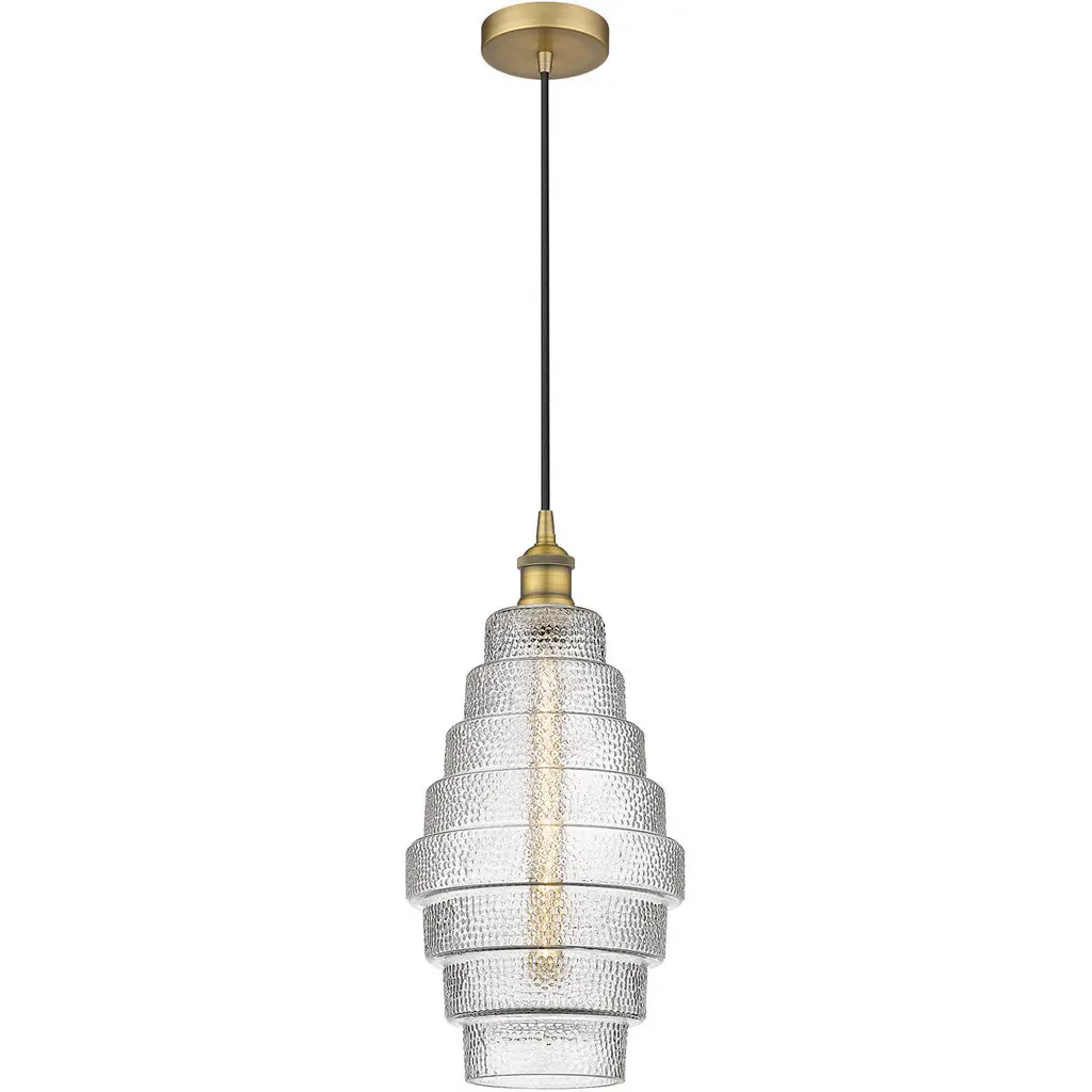Edison Cascade Led 8.25 Inch Antique Brass Mini Pendant Ceiling Light In Clear Glass
