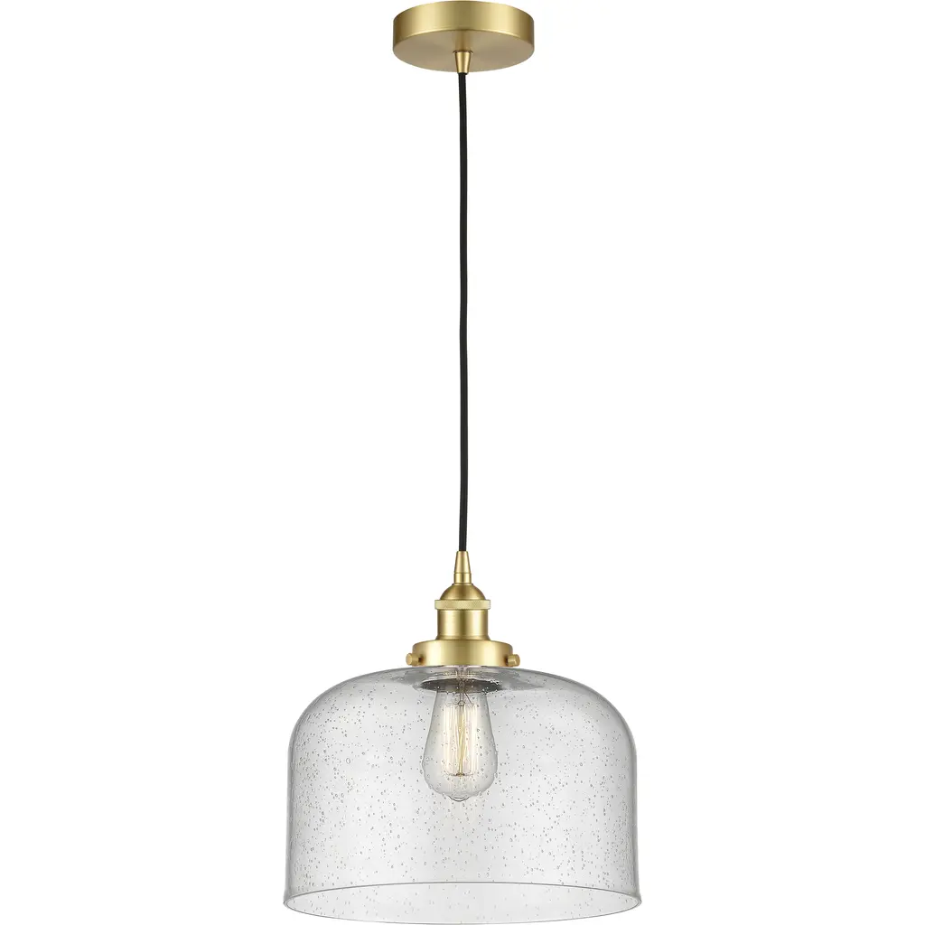 Edison Dome Led 16 Inch Brushed Brass Pendant Ceiling Light In Seedy Glass