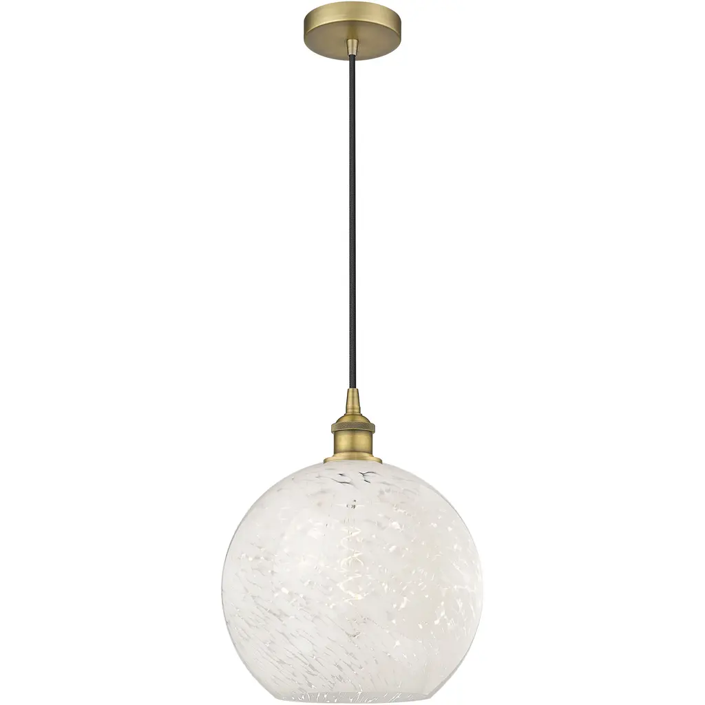 Edison White Mouchette 1 Light 13.75 Inch Brushed Brass Cord Hung Pendant Ceiling Light