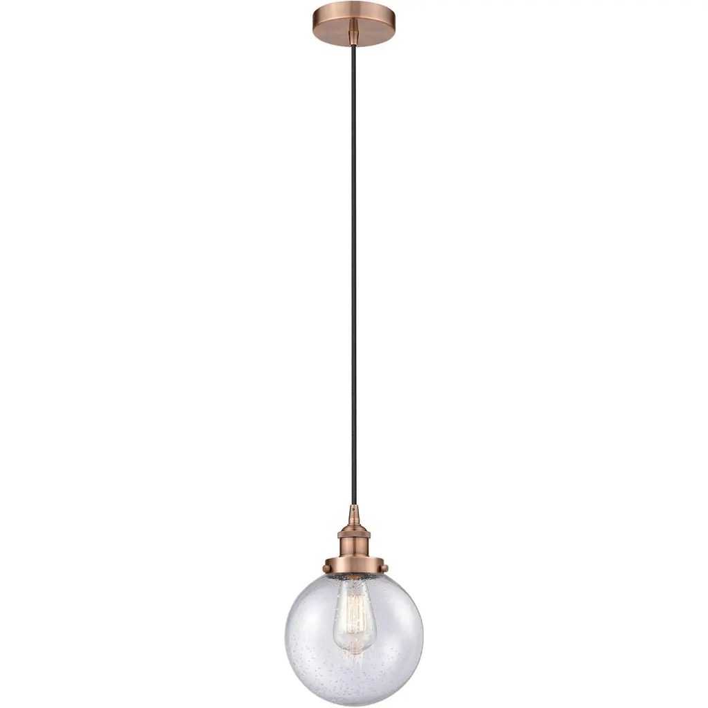 Edison White Venetian 1 Light 10 Inch Antique Copper Cord Hung Mini Pendant Ceiling Light