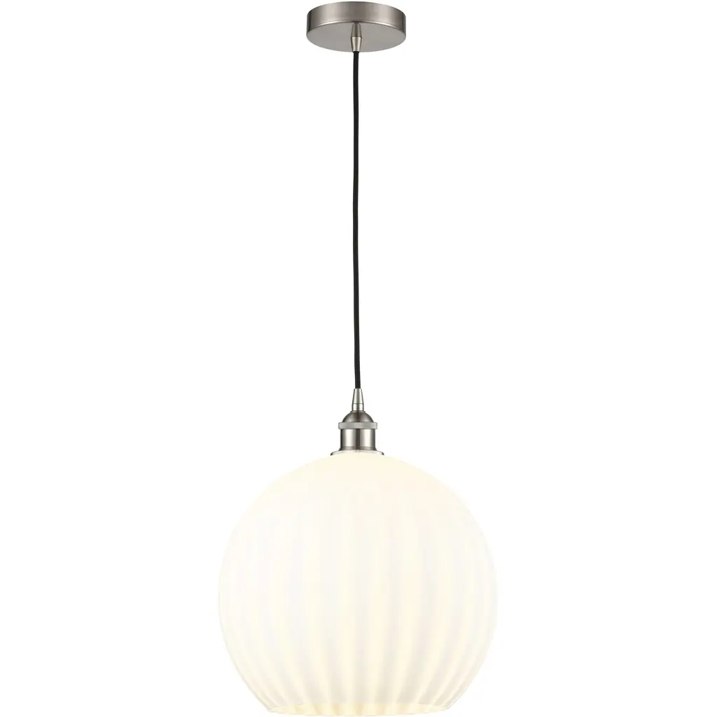Edison White Venetian 1 Light 12 Inch Polished Nickel Cord Hung Pendant Ceiling Light