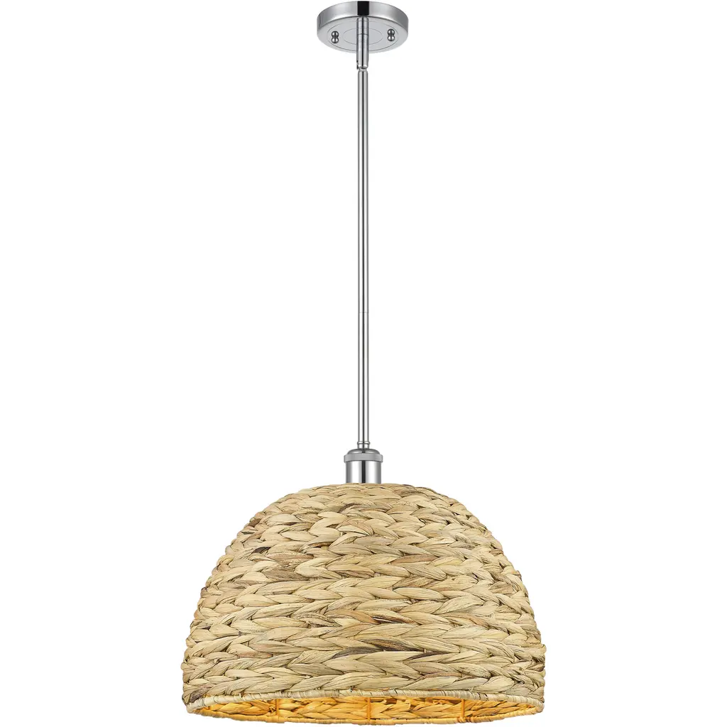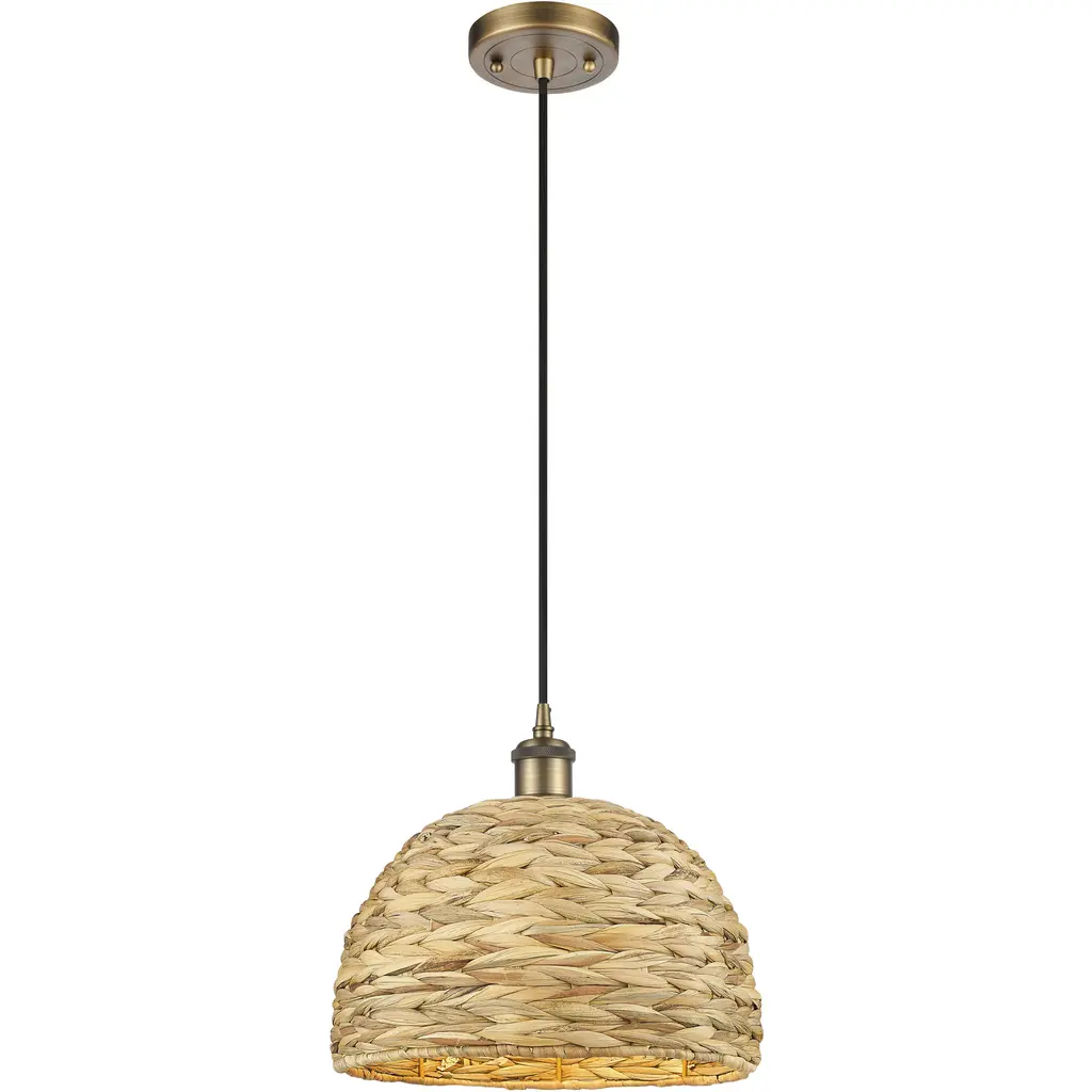 Edison Woven Rattan 1 Light 12 Inch Brushed Satin Nickel Mini Pendant Ceiling Light
