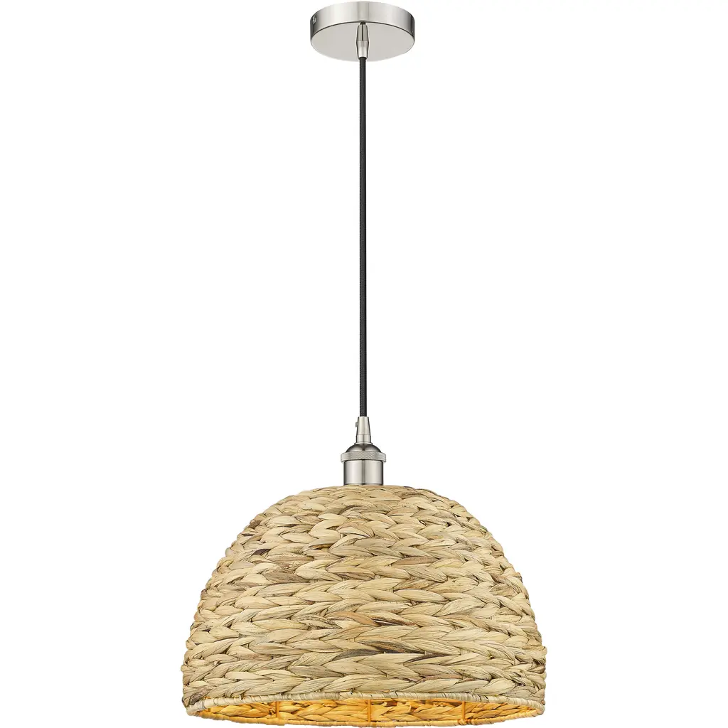 Edison Woven Rattan 1 Light 12 Inch Polished Nickel Mini Pendant Ceiling Light