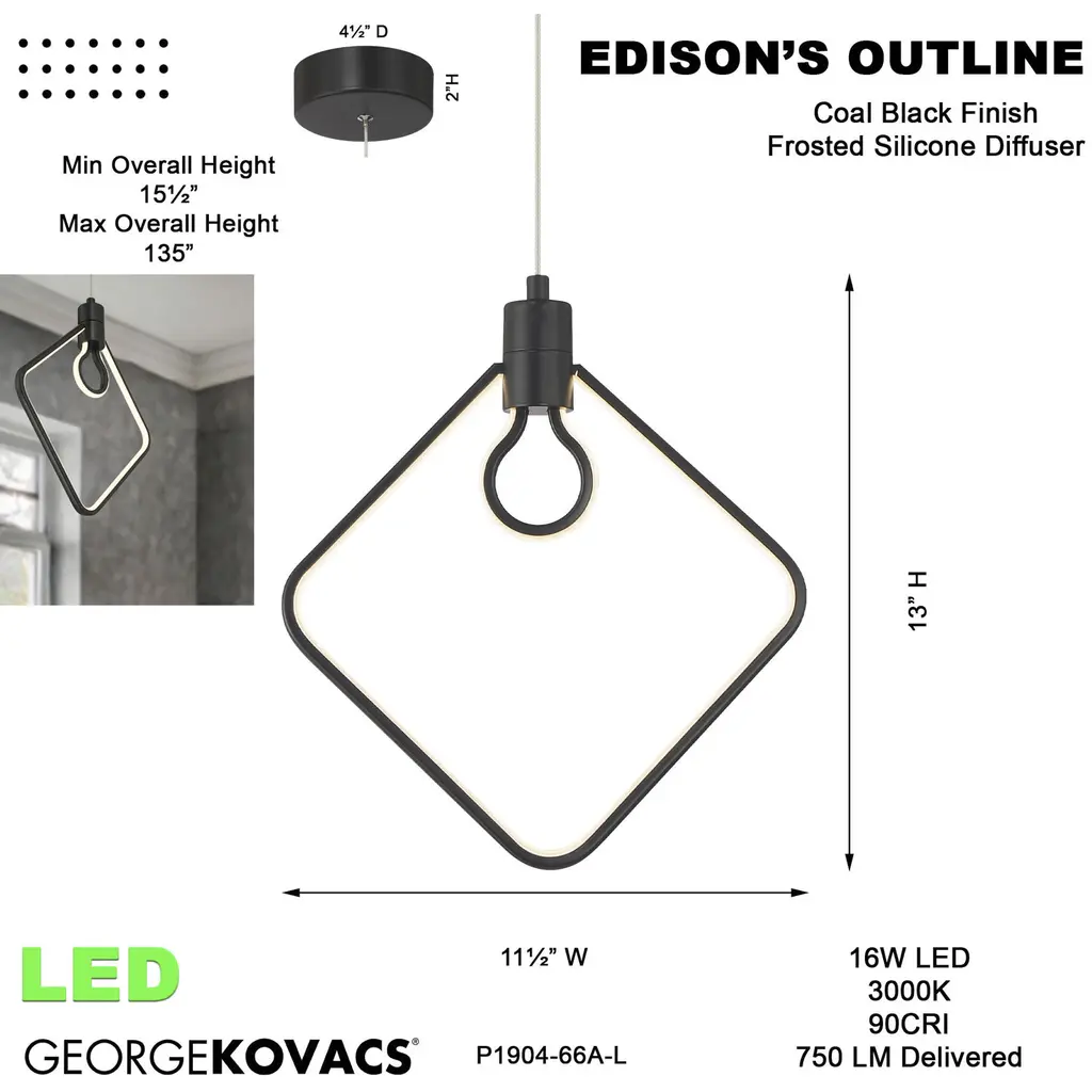 This 1 light Pendant from the Edison's Outline collection by George Kovacs will enhance your home with a perfect mix of form and function. The features include a Coal finish applied by experts. This item qualifies for free shipping!