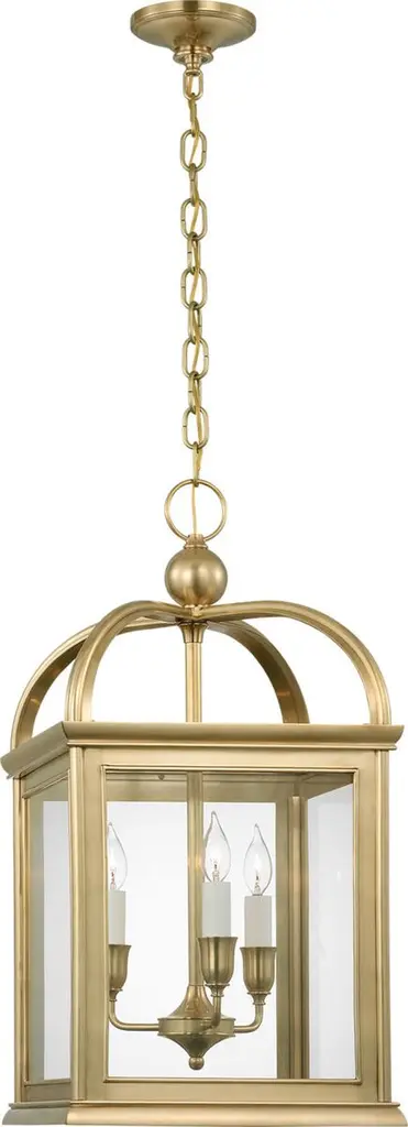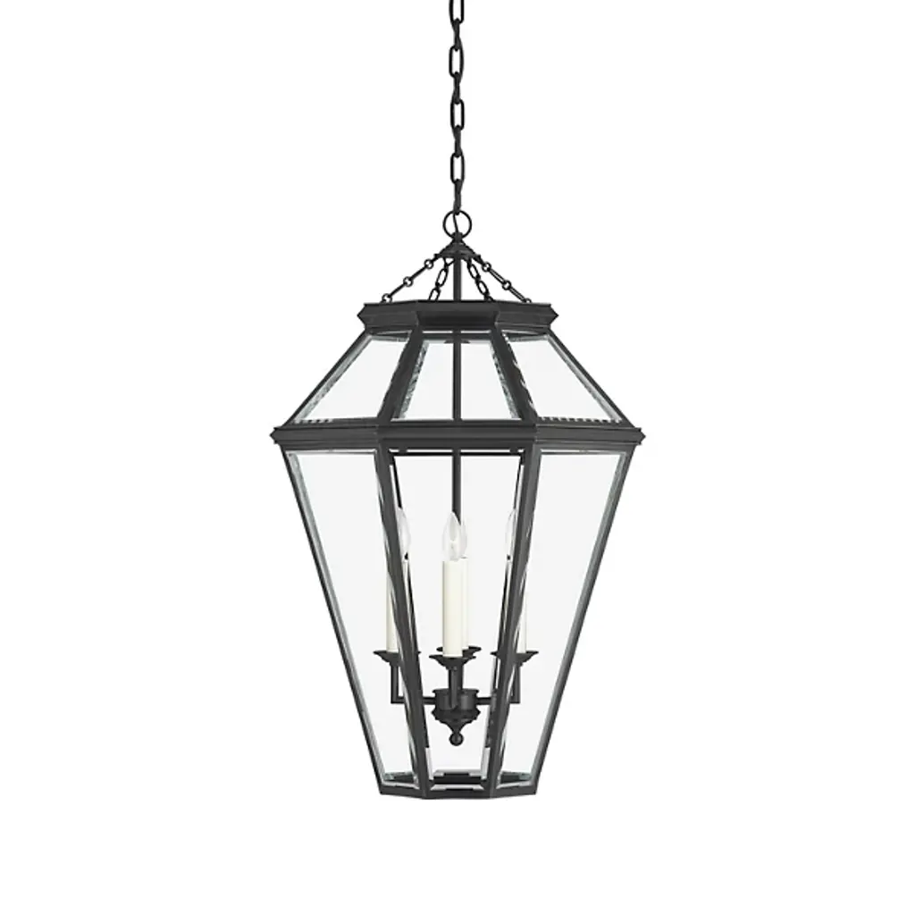 Bring sheer elegance to your home with a piece that commands attention. The Edmund Pendant from Visual Comfort Signature, formerly known as Visual Comfort, uses sharp angles and stark lines to elevate the atmosphere of the space. Thin metal lines precisely arranged around wide and clear glass panels catch the eye as they enclose upon a set of candelabra-style bulbs. Each bulb emits a bright demonstration of light that shapes the ambiance into a relaxing and memorable experience.