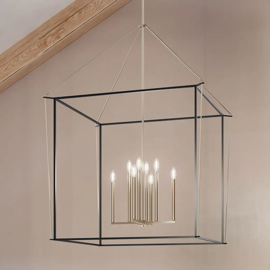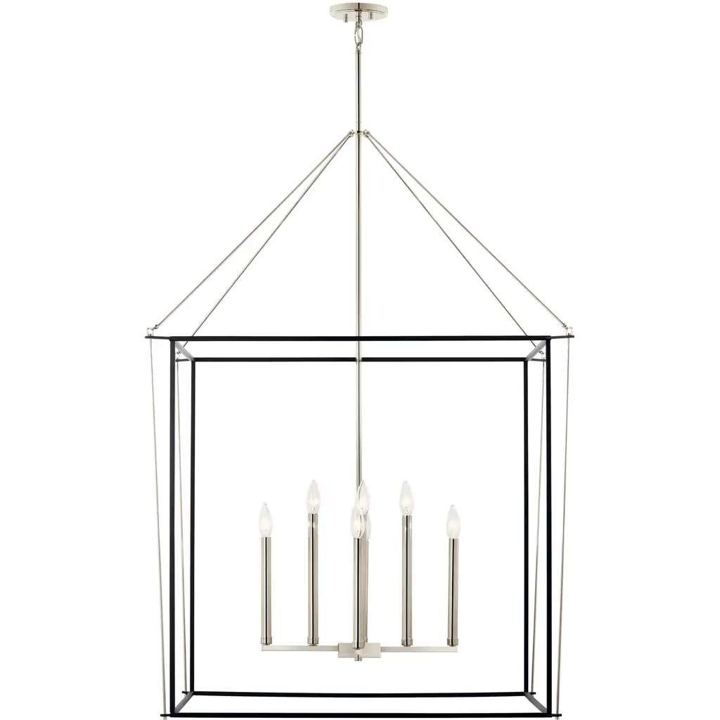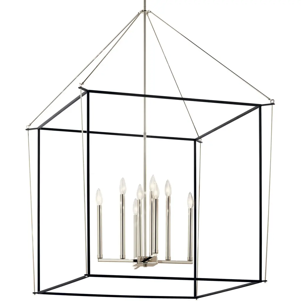 Eisley 50 Inch 8 Light 2 Tier Foyer Pendant in Polished Nickel and Black