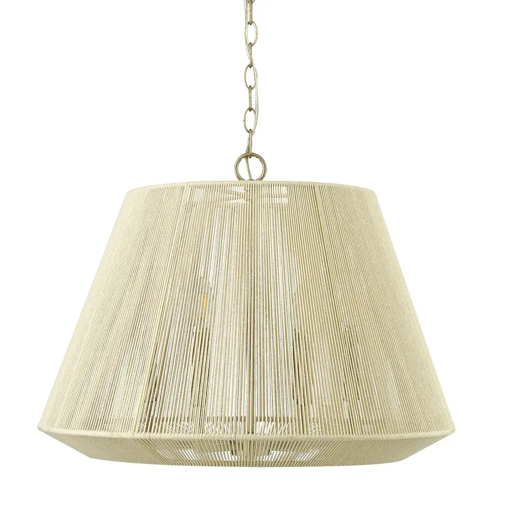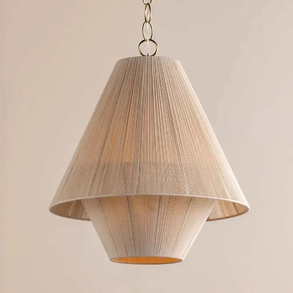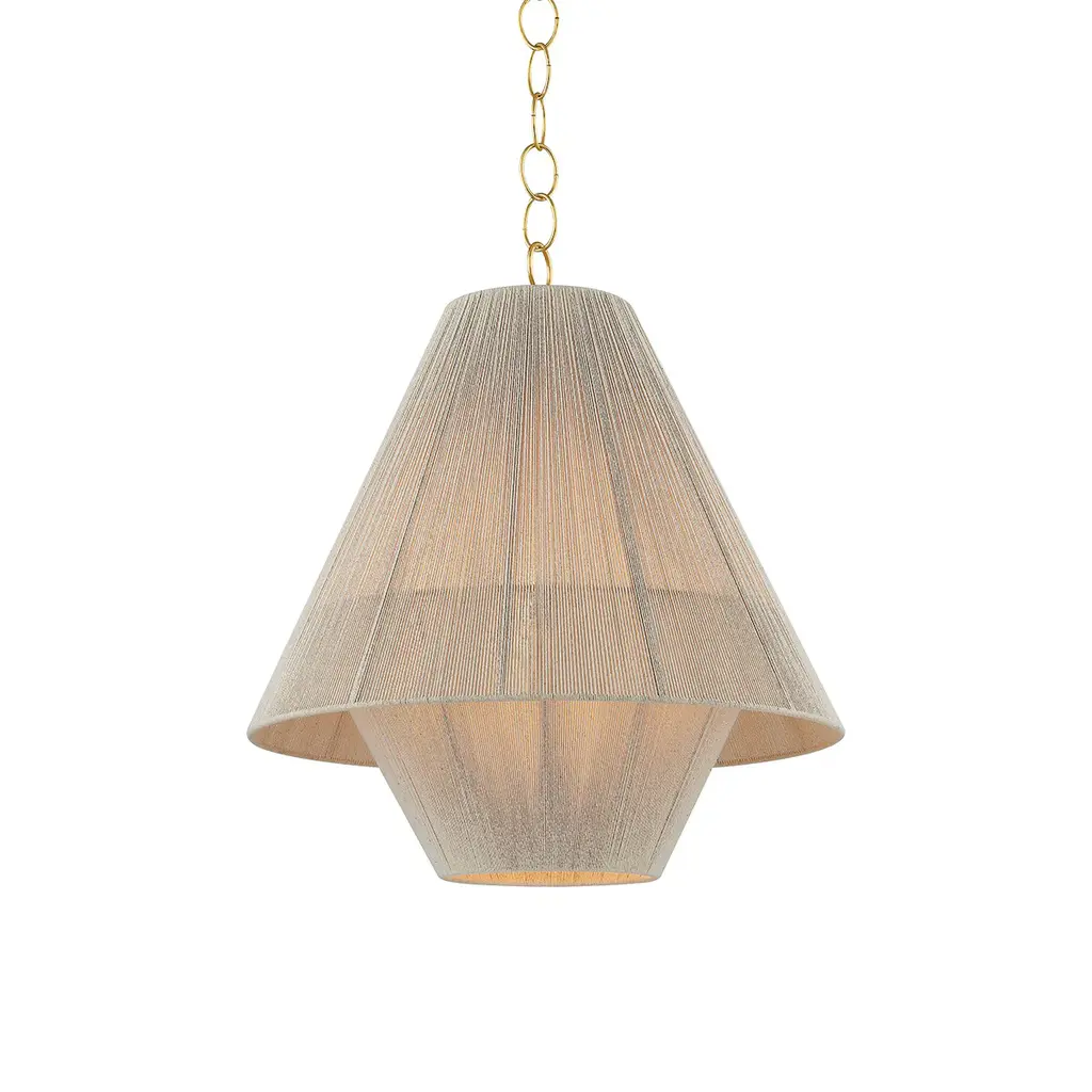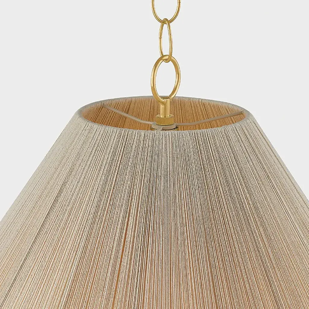 Indulge in the effortless sophistication of the Eleanor Pendant Light from Mitzi by Hudson Valley. Two delicate string shades encircle the central light, creating a mesmerizing moire pattern. The Aged Brass chain adds a refined touch, making this light perfect for your dining room or bedroom. Elevate your space with the subtle elegance of Eleanor. Highlights