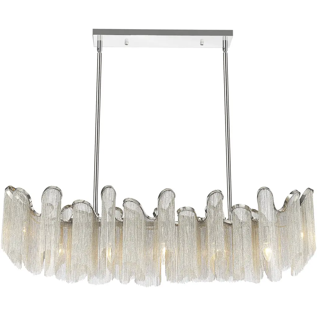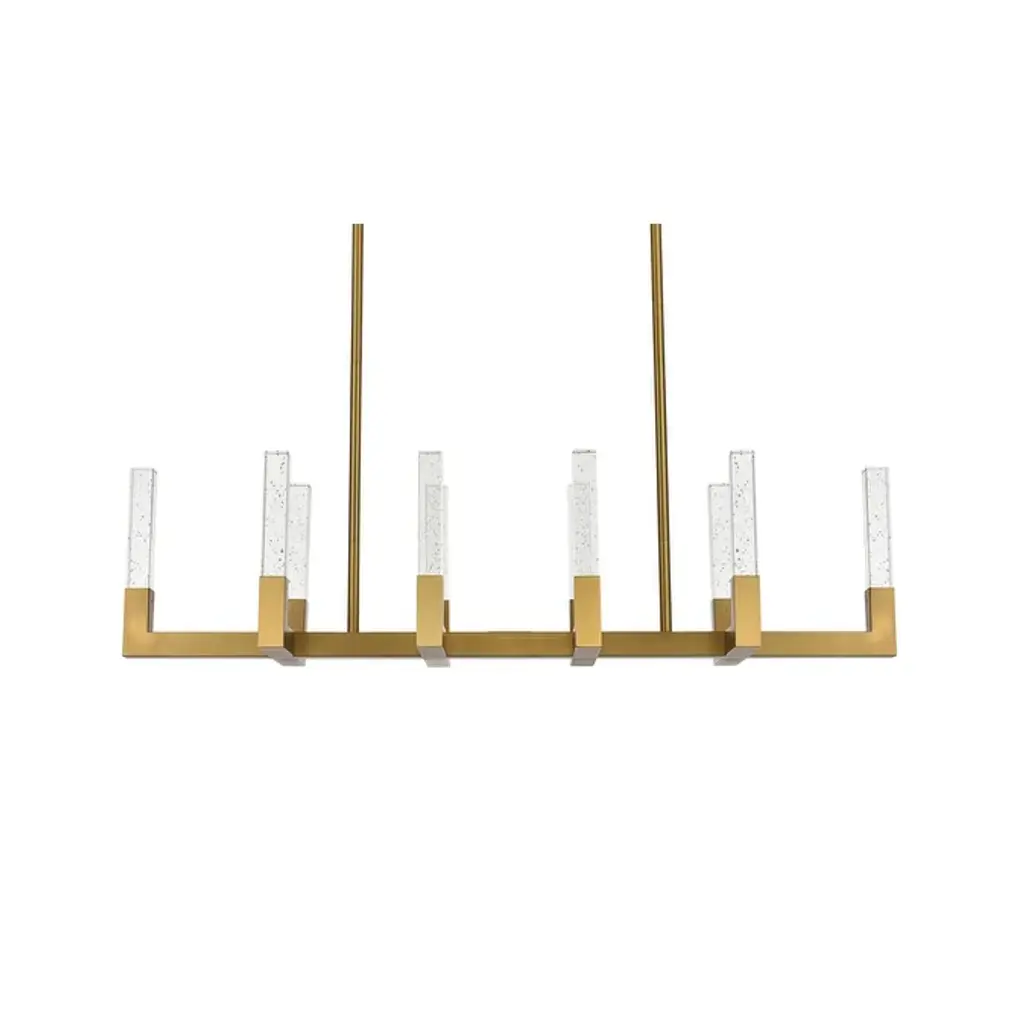 "Introducing the Noemi pendant—an extraordinary blend of contemporary design and industrial elegance. With its chic linear silhouette, this pendant light adds a modern flair to your decor. The seeded glass crystal rods create a captivating play of light, enhancing your space with timeless elegance. Crafted from enduring iron and ETL certified for safety, the Noemi ensures a perfect balance of enduring quality and brilliant illumination with energy-efficient LED lights. Customize your ambiance effortlessly with the adjustable color temperature feature. Whether you seek a relaxed evening glow, a neutral and focused atmosphere, or a vibrant and energizing radiance, our chandelier provides the flexibility to cater to your preferences. Elevate your space with personalized illumination, creating the perfect setting for every moment. The Noemi pendant is a statement of sophistication and functionality for your home."Features:Dimensions:Electrical Specifications:
