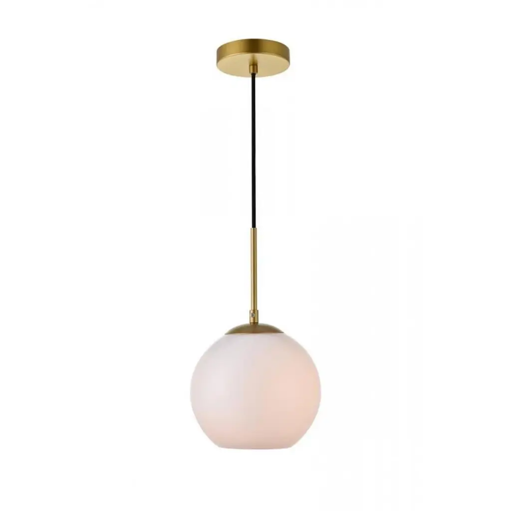 Elegant Lighting Baxter 1 Light Brass Pendant With Frosted White Glass