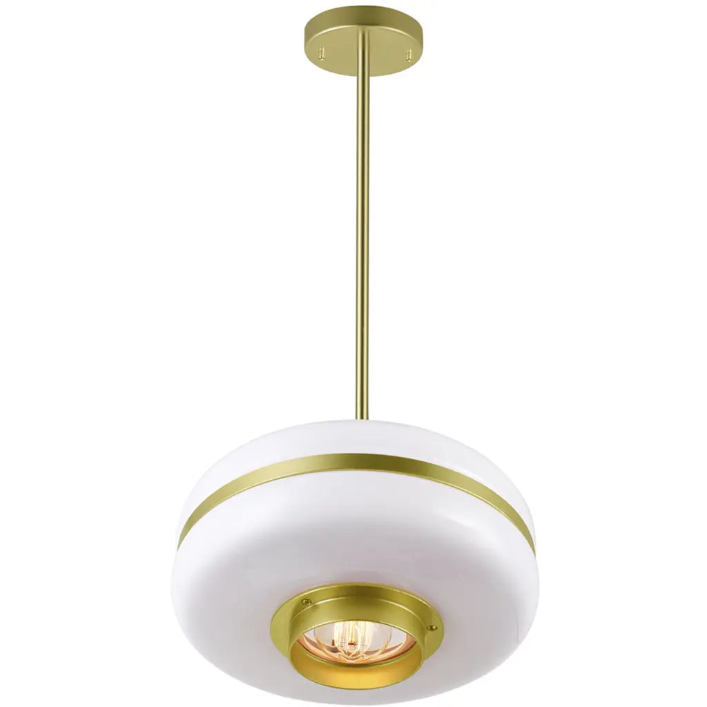 A fashionable choice for ambient illumination, the Elementary 1 Light Pendant in Pearl Gold makes a charming addition above a kitchen island or counter. Made of metal and glass, this 12 inch pendant light features a white and gold combination that looks chic, effortless, and modern. Hang a trio of this pendant light in your kitchen or dining room and bring not just a boost of brightness but also a subtle yet significant style to your space.