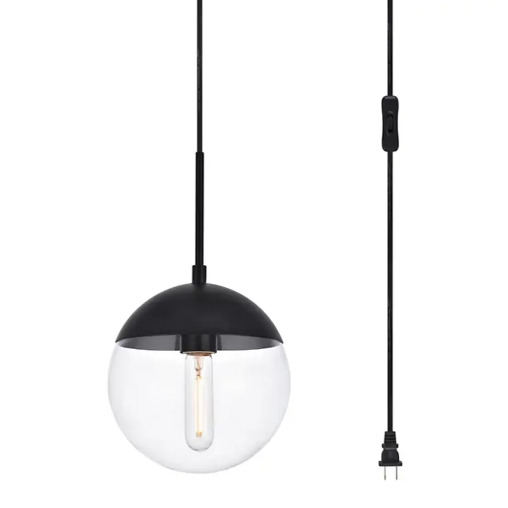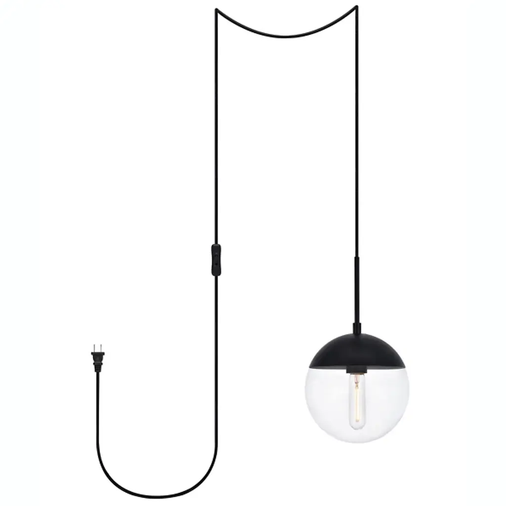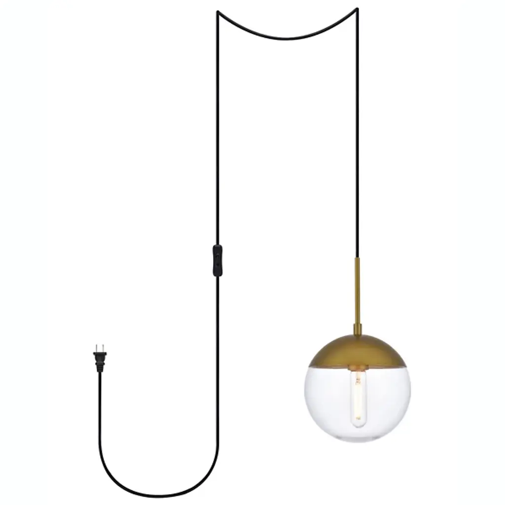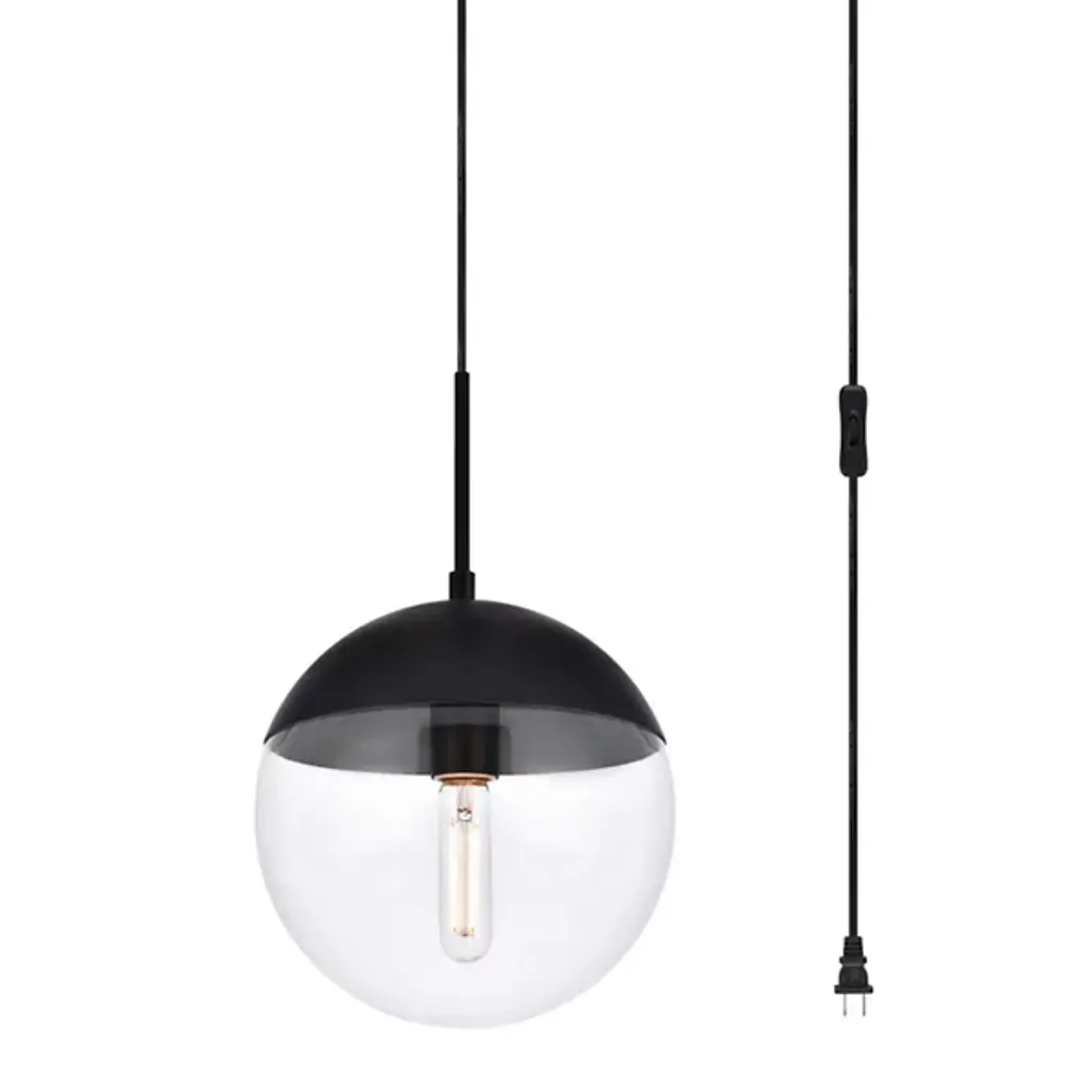 The Elenore Plug in Pendant from Huxe has mid-century modern charm and contemporary style. Elenore features a bowl-shaped metal framework that meets a refined glass shade, forming a globe that encapsulates a powerful LED. This minimalistic yet refined design creates a captivating light fixture. The clean lines and globe shape offer a timeless aesthetic, making it suitable for various settings. Secured by a downrod and a ceiling canopy, your pendant offers a beautiful glow.
