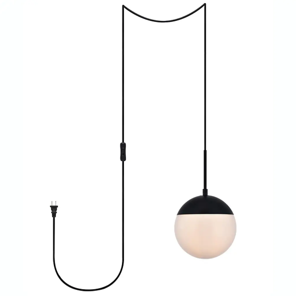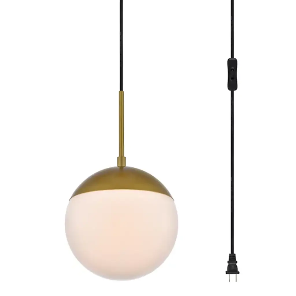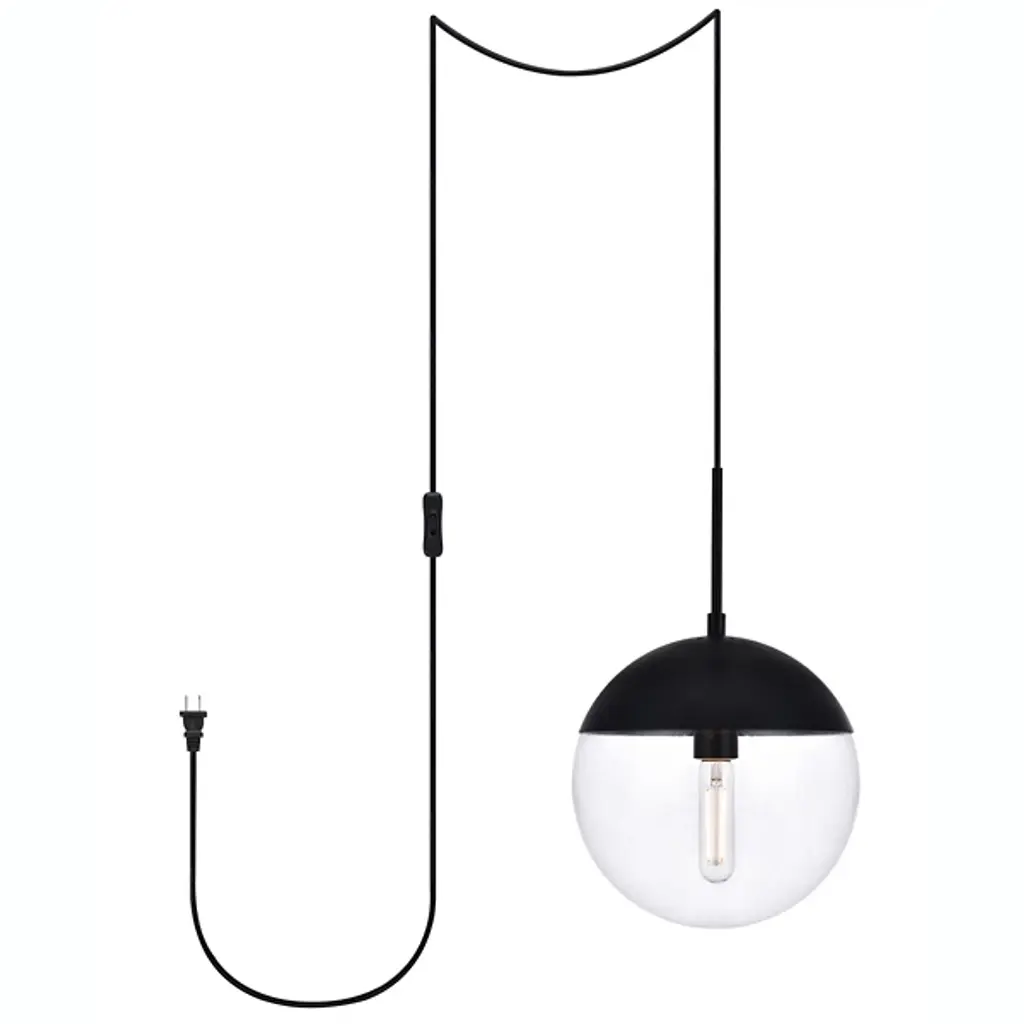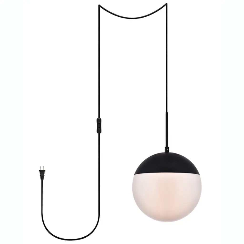 The Elenore Plug in Pendant from Huxe has mid-century modern charm and contemporary style. Elenore features a bowl-shaped metal framework that meets a refined glass shade, forming a globe that encapsulates a powerful LED. This minimalistic yet refined design creates a captivating light fixture. The clean lines and globe shape offer a timeless aesthetic, making it suitable for various settings. Secured by a downrod and a ceiling canopy, your pendant offers a beautiful glow.