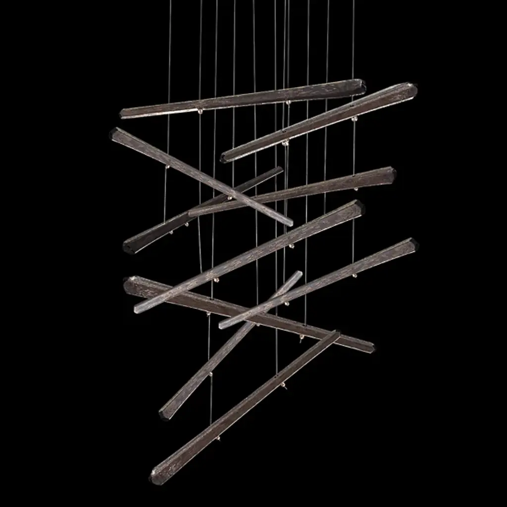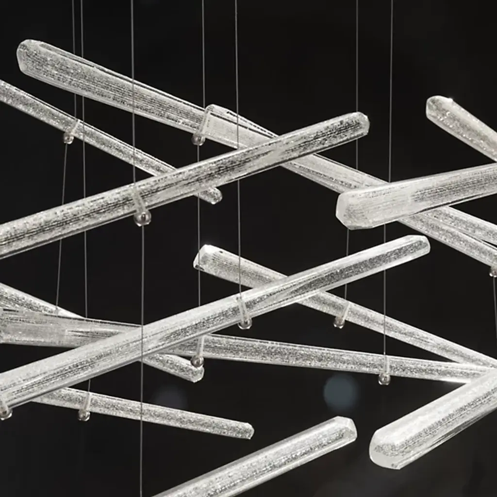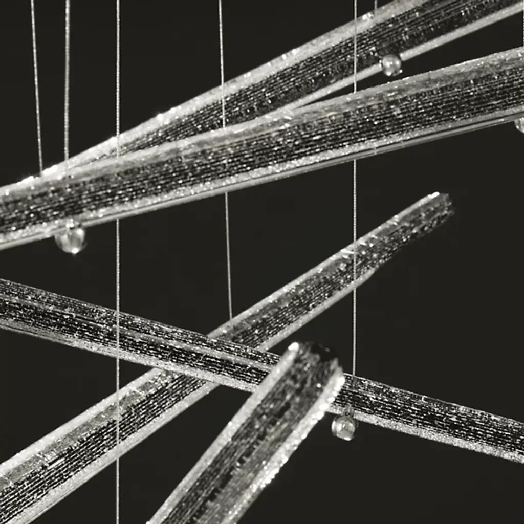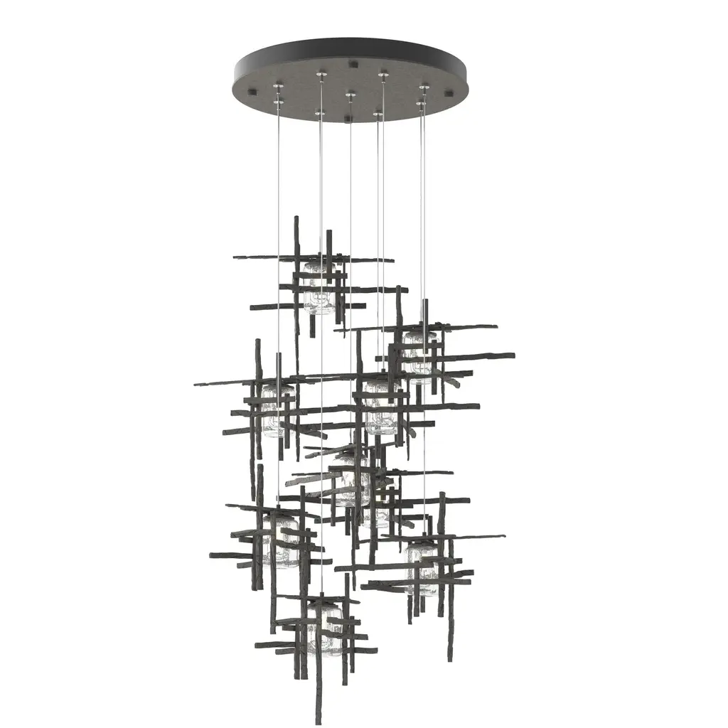 The Elevate LED Round Multi Light Pendant by Fine Art Lamps captures the eye with its minimalistic nature and artful composition. A series of solid glass spires with contour carving and polishing are each encased in a mixture of specialized crystallized silica, creating a unique, textural surface for light to interact with. Suspended from thin cables, these spires have an airy look as they are supported from a beautifully finished round canopy that houses a set of energy-efficient downlights, highlighting this artful design and brightening surroundings.