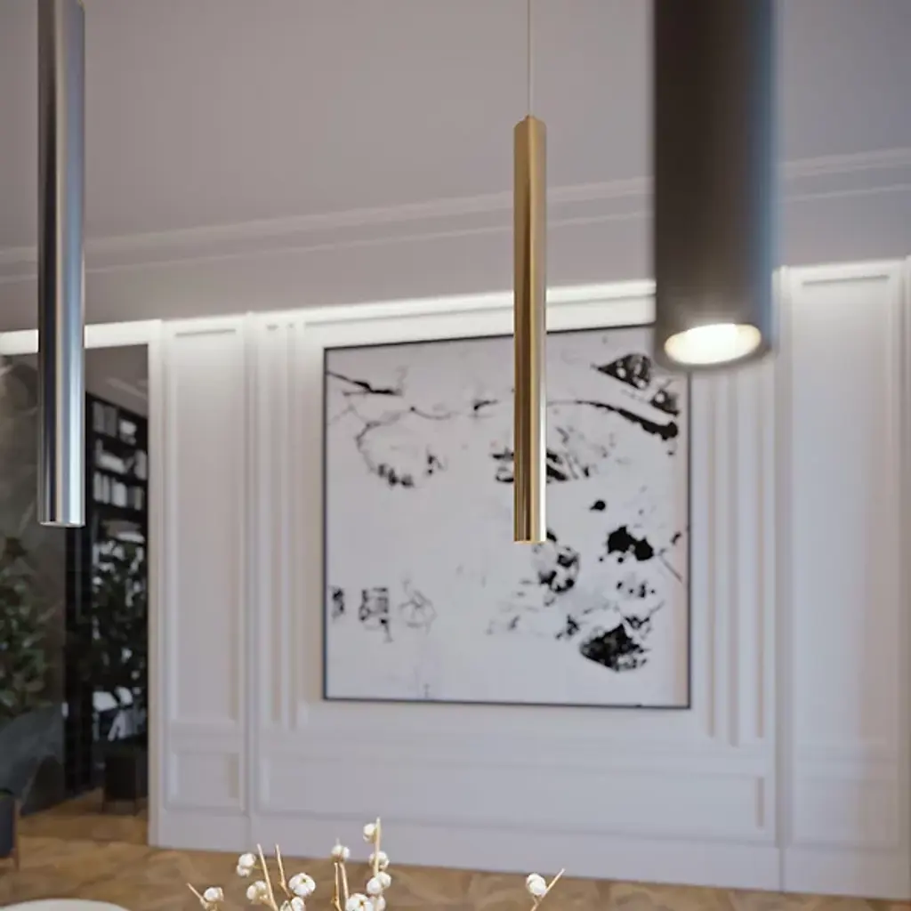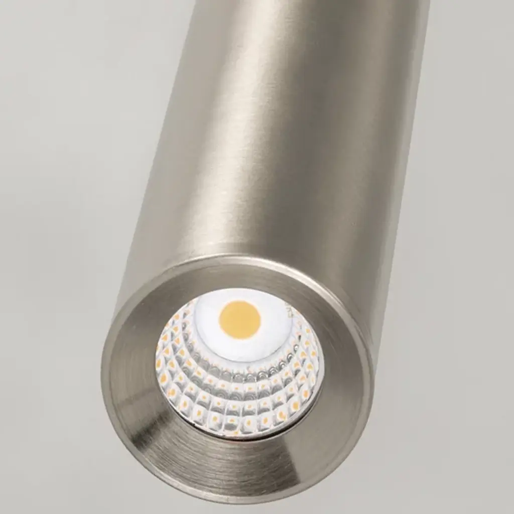 A sleek design and focused light for modern interiors. The Eli LED Mini Pendant by AFX Lighting is a slim cylinder of Steel, which directs a bright and focused beam of LED downlight. While the minimalist good looks of this pendant light can certainly be appreciated singly (on either side of a bed or bathroom mirror, for example), arranging it in multiples over a kitchen island or dining table can really amp up the sense of drama in those spaces.