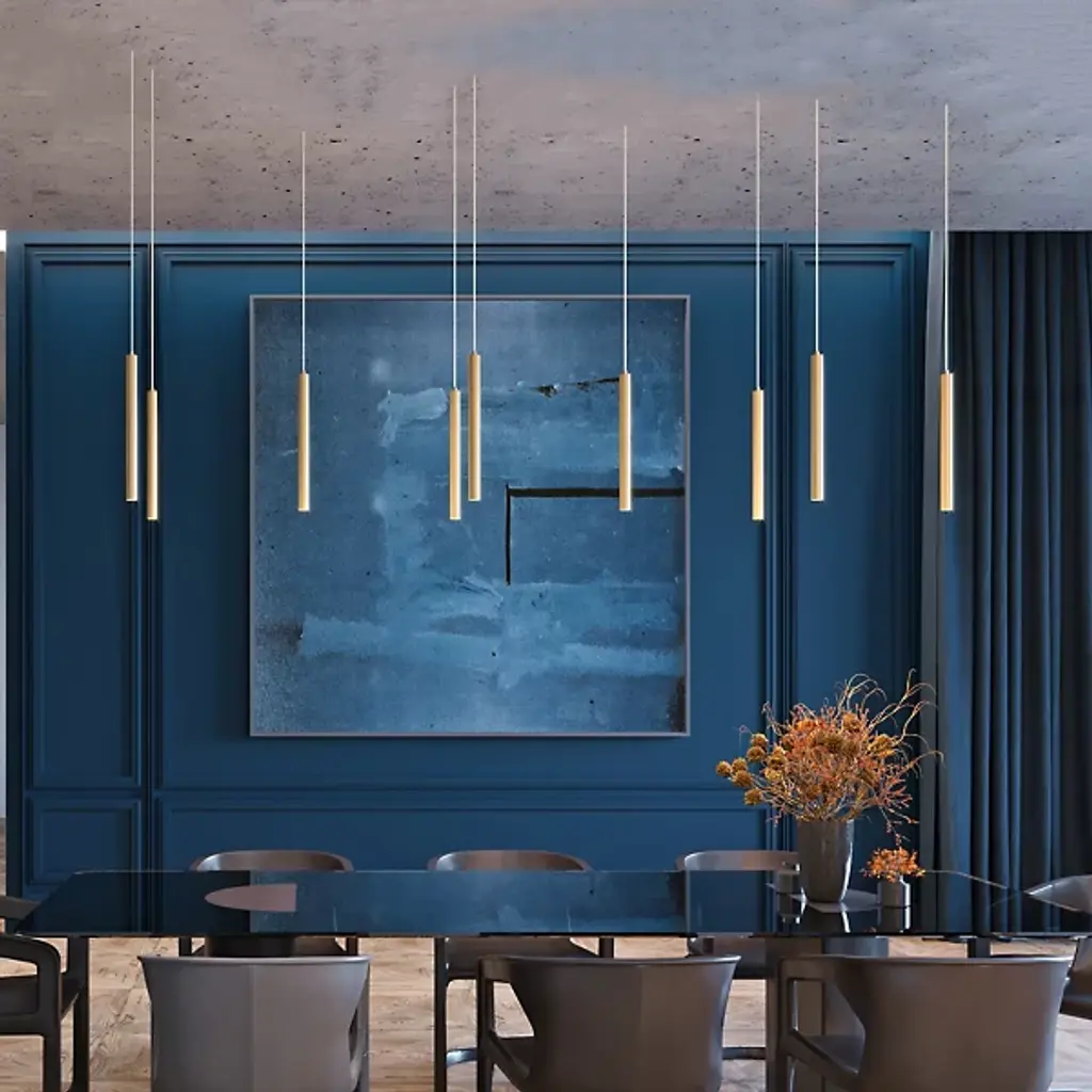 A sleek design and focused light for modern interiors. The Eli LED Mini Pendant by AFX Lighting is a slim cylinder of Steel, which directs a bright and focused beam of LED downlight. While the minimalist good looks of this pendant light can certainly be appreciated singly (on either side of a bed or bathroom mirror, for example), arranging it in multiples over a kitchen island or dining table can really amp up the sense of drama in those spaces.