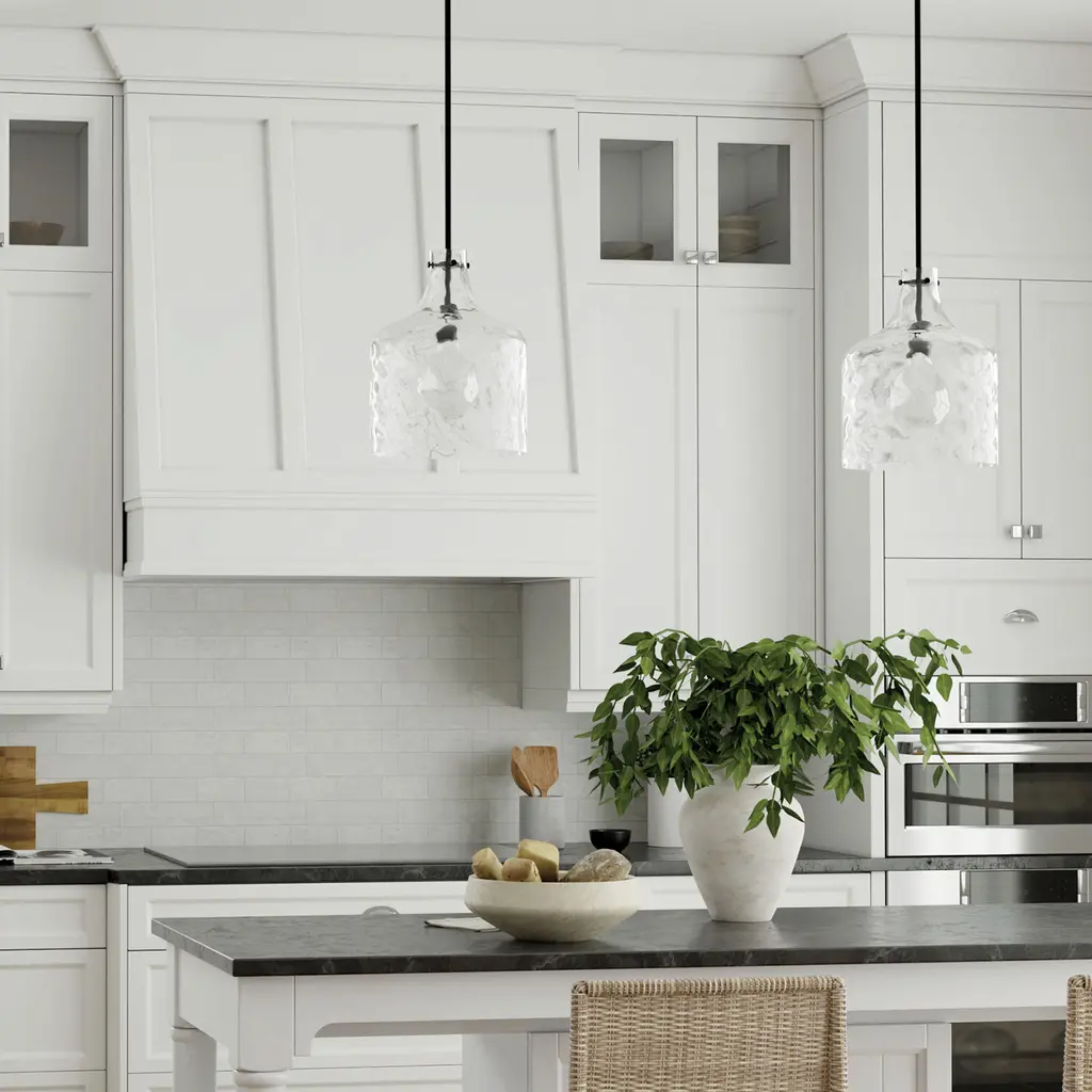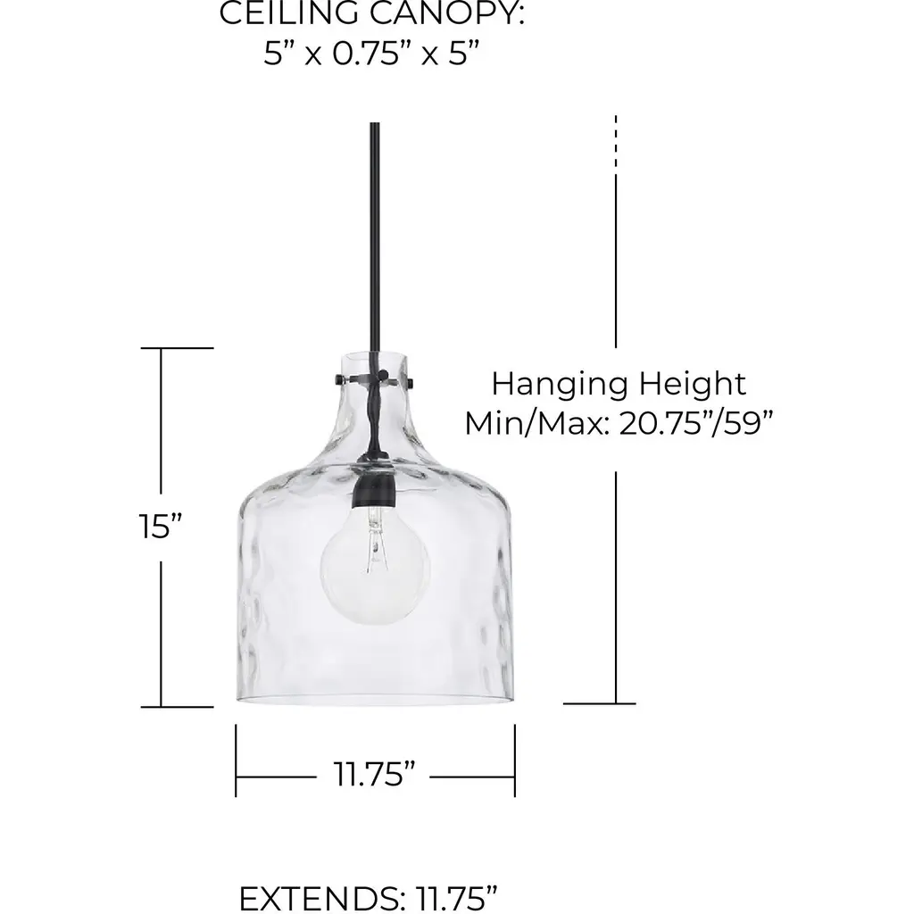12" 1-Light Clear Water Glass Pendant in Matte Black
