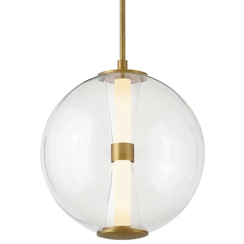 The Elin LED Pendant from Hinkley features a bold and contemporary design that centers around sculpted clear glass, accentuating an integrated LED inner light source. This luminaire blends conventional and striking elements, which makes it well-suited for modern and transitional interiors alike. Elin stands out as a centerpiece, combining functionality with aesthetic appeal, perfect for those seeking a statement piece that enhances both style and illumination in any contemporary living space.