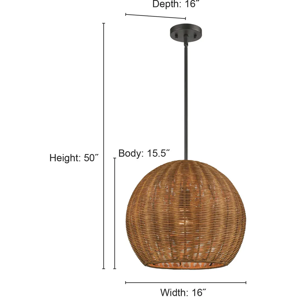 Elise 1 Light 16 Inch Natural Indoor Pendant Ceiling Light