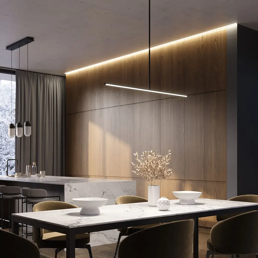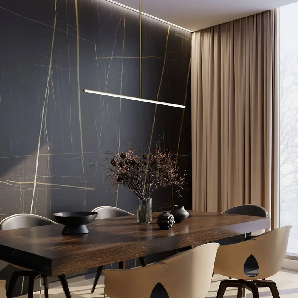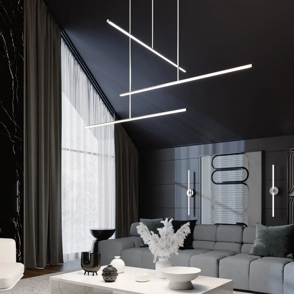 A statement of modern versatility, the Elizabeth Linear LED Pendant Light from AFX offers a sophisticated and highly adaptable lighting solution. This sleek light bar features a steel frame and a frosted acrylic diffuser, casting a soft glow both forward and down. Its innovative design allows you to select from five light color temperatures to create the perfect atmosphere. Uniquely capable of being mounted horizontally or vertically, with adjustable stems and a sloped-ceiling compatible canopy, it’s a perfect centerpiece for any contemporary space. Highlights: